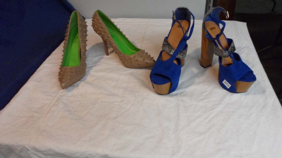 Suede Sandal 5" heel Blue Size 10 / Studded Pump 4" heel Brown Size 10
