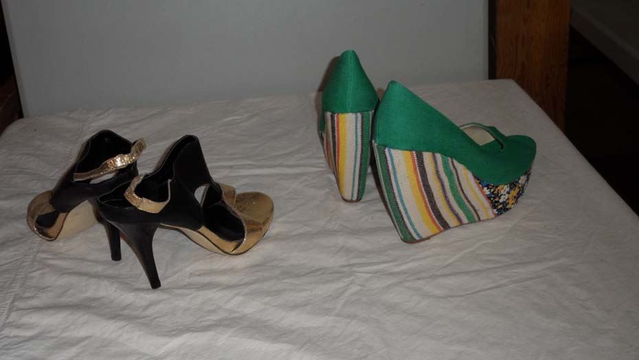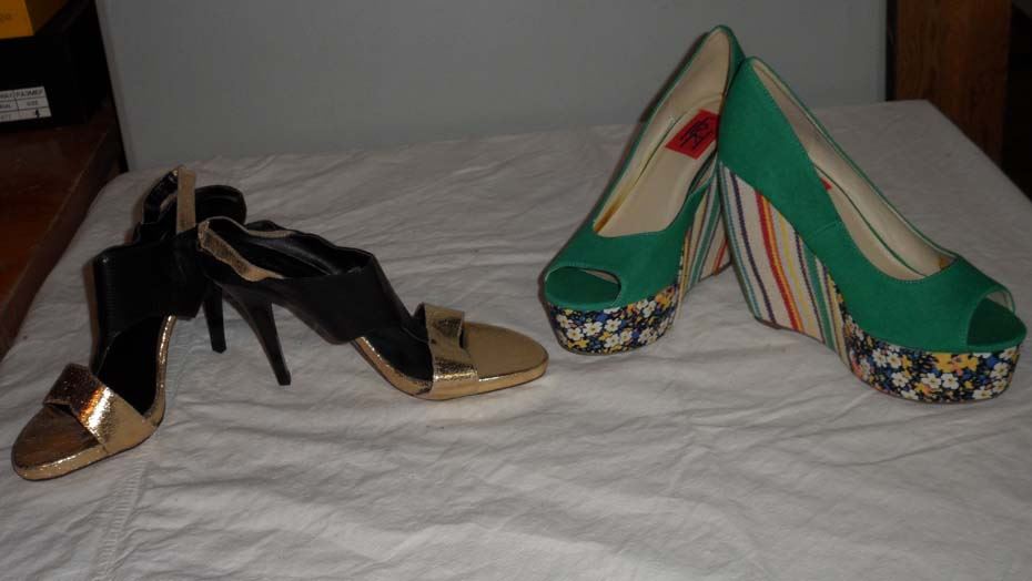 Strap Sandal 3" heel Balck Size 240 / Wedge Sandal 4" heel Green Size 7