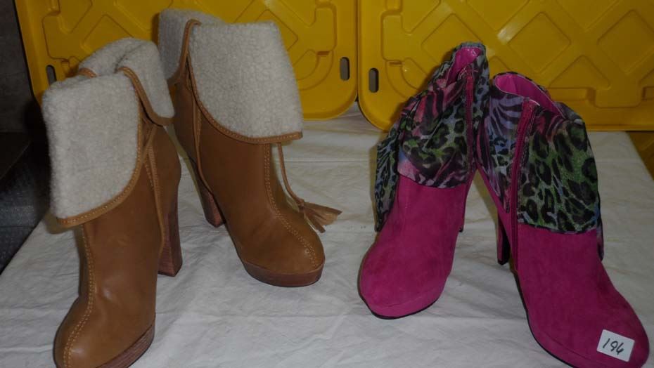 Leather Boots 4" heel Tan Size 37 / Suede Fashion Boots 5" heel Pink Size 7