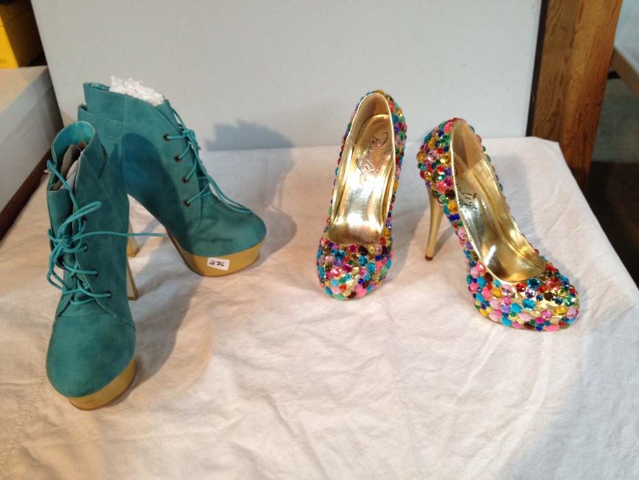 Beaded Shoe 5" heelMulticolor Size 7 / Lace Up Boot 5" heel Teal Size 7