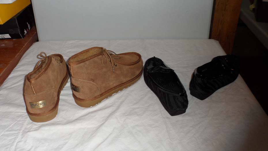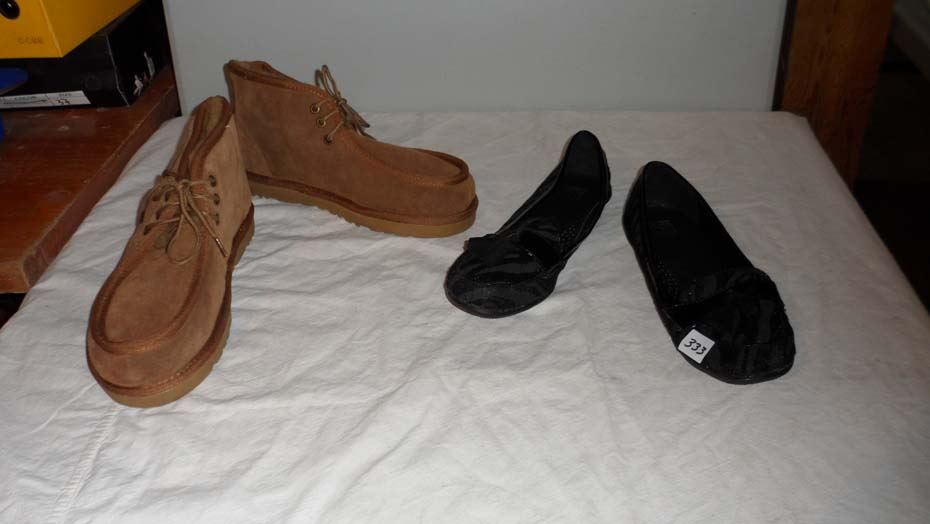 Suede Fur Lined Boot flat Brown Size 8 / Slip On Shoe flat Black Size 38