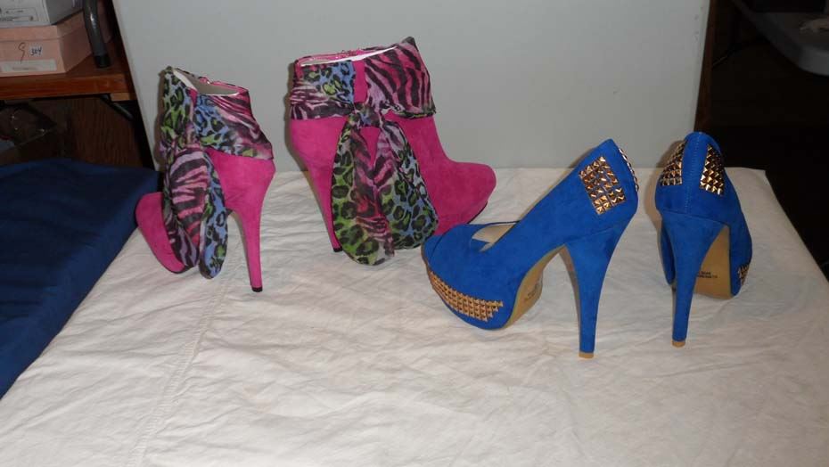 Side Zip Boot 4" heel Pink Size 10 / Suede Shoe 5" heel Blue Size 10