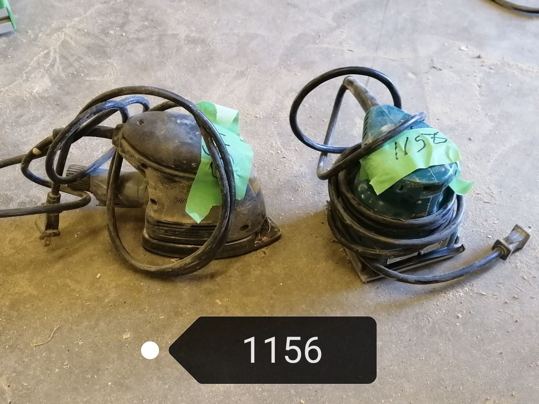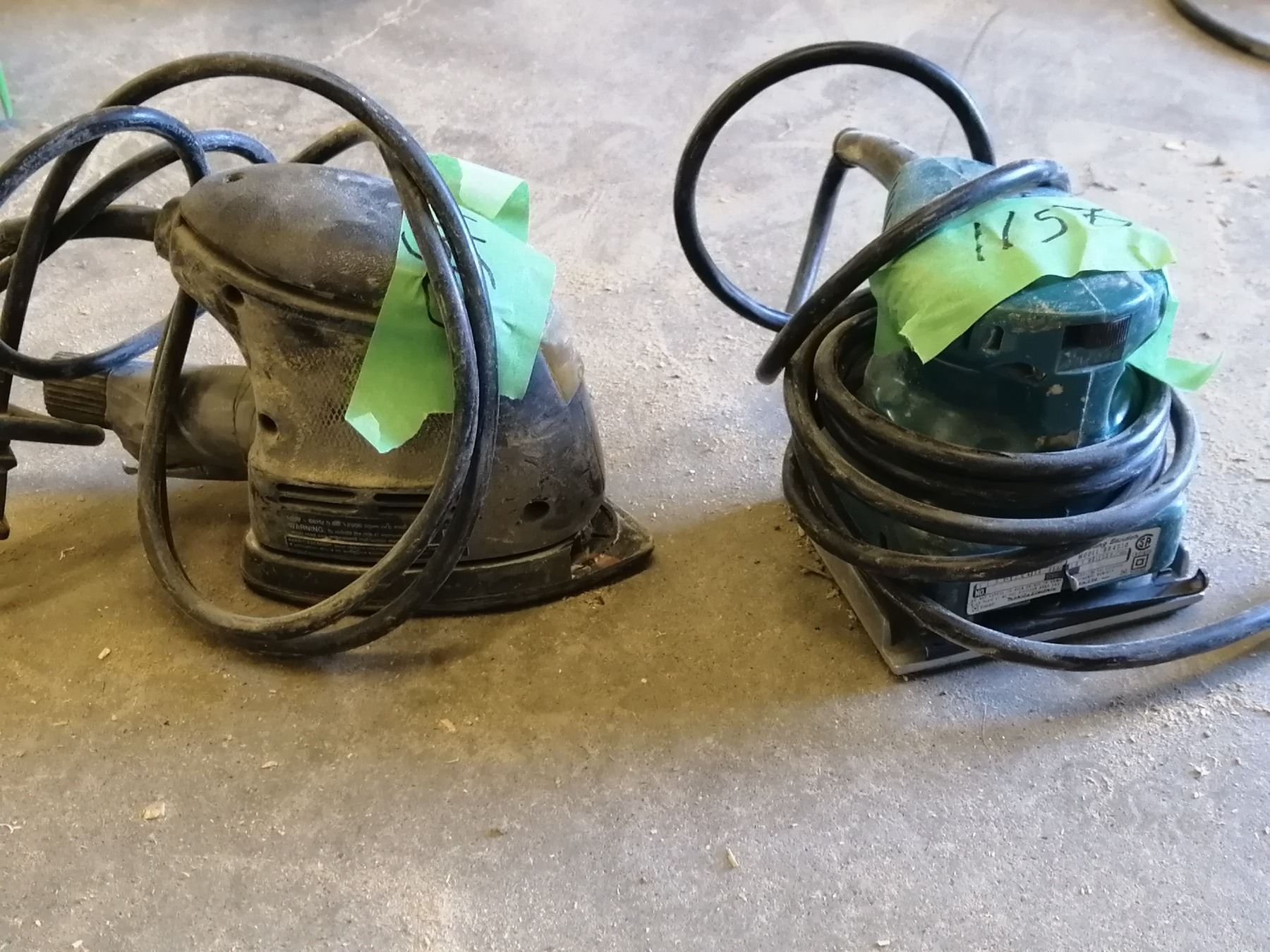 2 palm style orbital sanders. 1 Makita & 1 Mastercraft with pointed corner finish pad