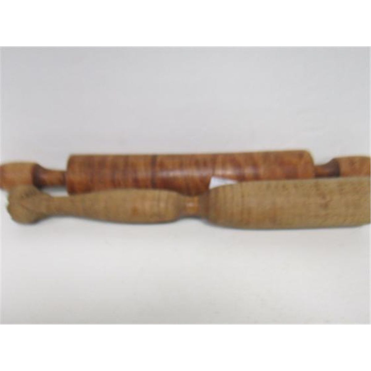 2 pc carved wood rolling pin and grinder press-one piece-13 and 15 1/2