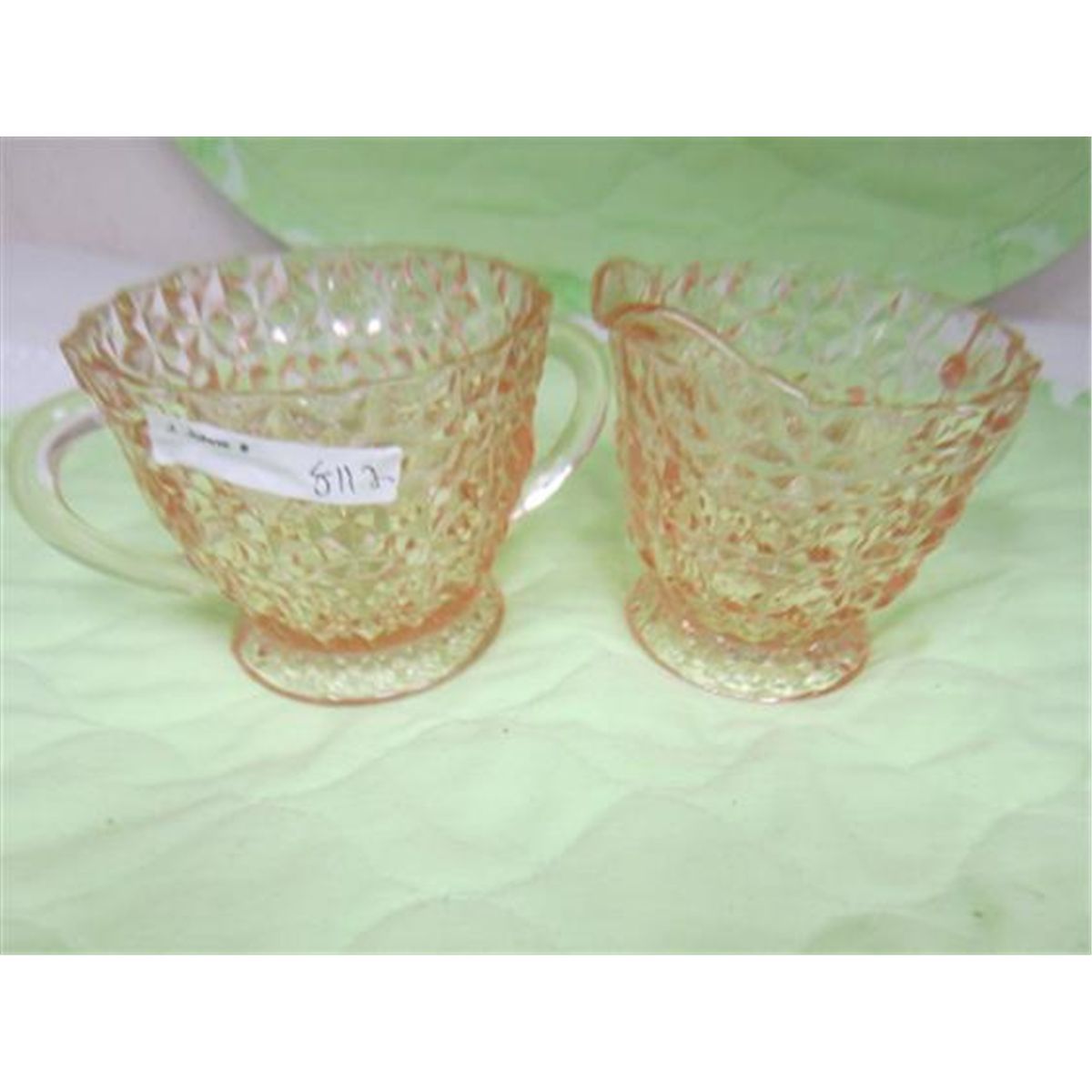 2 pc creamer and sugar pink in color - button star pattern - 3 1/4"