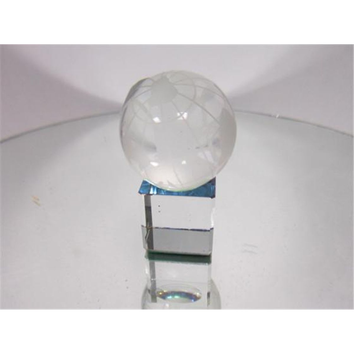 2 pc crystal world on square base - world is free form spinning-2 1/2 tall- shines in multi color spectrum