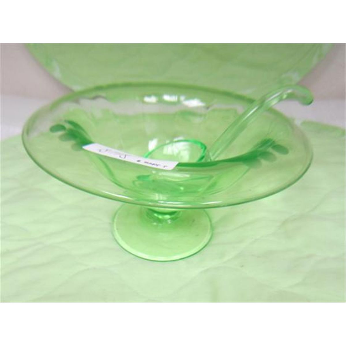 2 pc mayo set - etched green glass pedestal base round bowl with the ladel - 3 1/2 tall