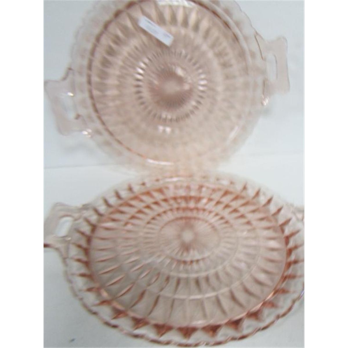2 pc-Pink Windsor diamond round tray with handles 8 1/2 by 9 3/4-