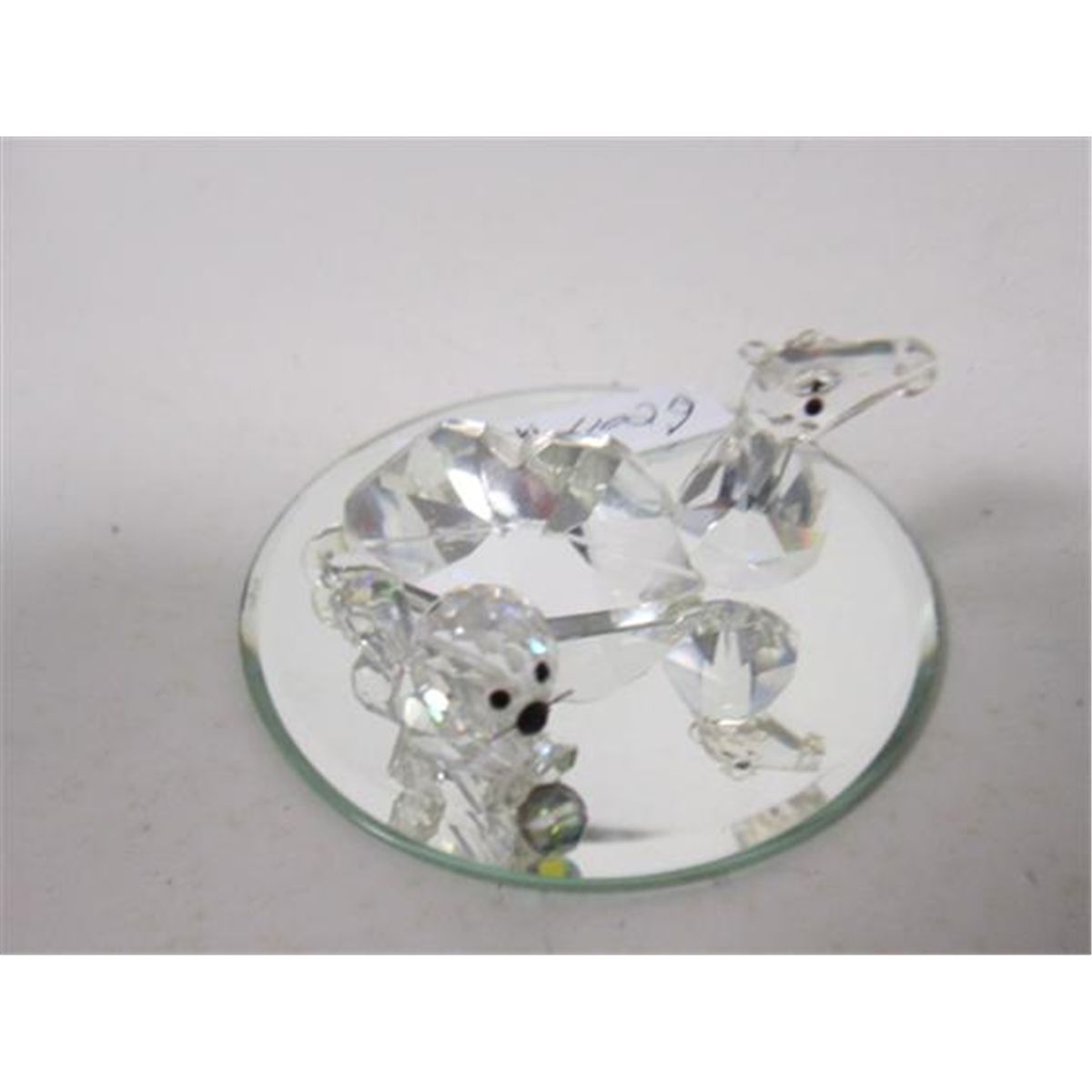 2 pc squirrel no ears & Lock ness monster crystal on mirrored base- Swarovski ? missing 1 ear- on mirrored base no box