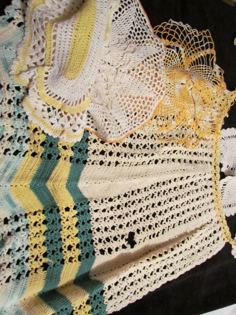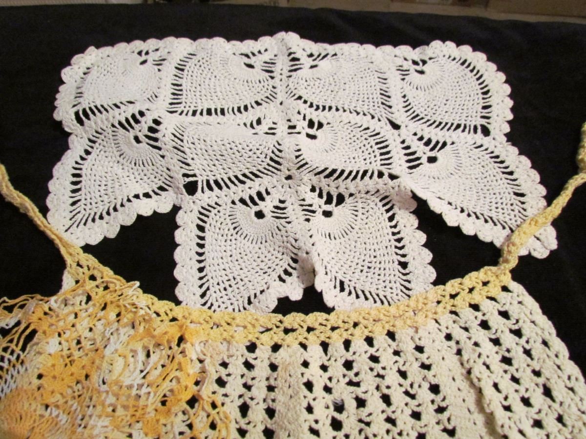2 pcs Crochet Apron + Doilies