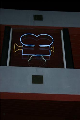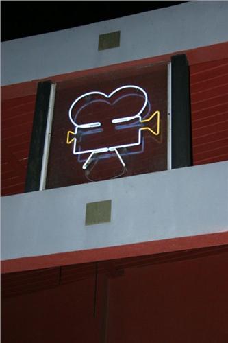 2 pcs. Neon Camera signs near the top of the Movieland Wax Museum building