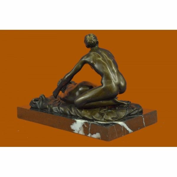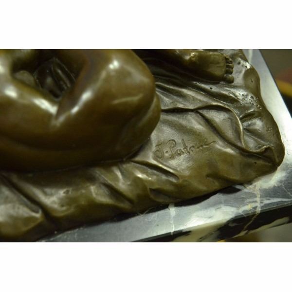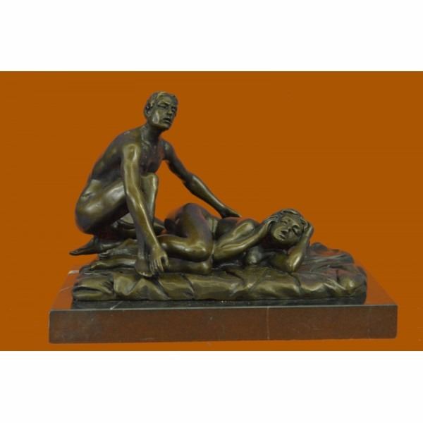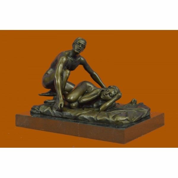 The sculpture here is displaying a young couple where the male is sexually satisfying the sexy girl in an amazing Vienna Art object made of 100% finest bronze. This erotic Vienna Bronze is the captured moment of great heated sex. The great provoking sculpture was designed by the artist Jean Patoue, and is also signed by him. The bronze sculpture of a horny couple, notably the experienced older one and the inexperienced virgin, can be called a real eye-catcher in each collection on Vienna Art sculptures. The figure is a hot and stunning picture of endless desire and an absolute must-have. Condition: This sculpture is in perfect condition. Bronze Dimensions with Marble Base:Height 6" x Width 7" Marble Dimensions: 7" X 4.5" Height without base: 5" Weight : 6 LBS Inventory : 31EPA1154013