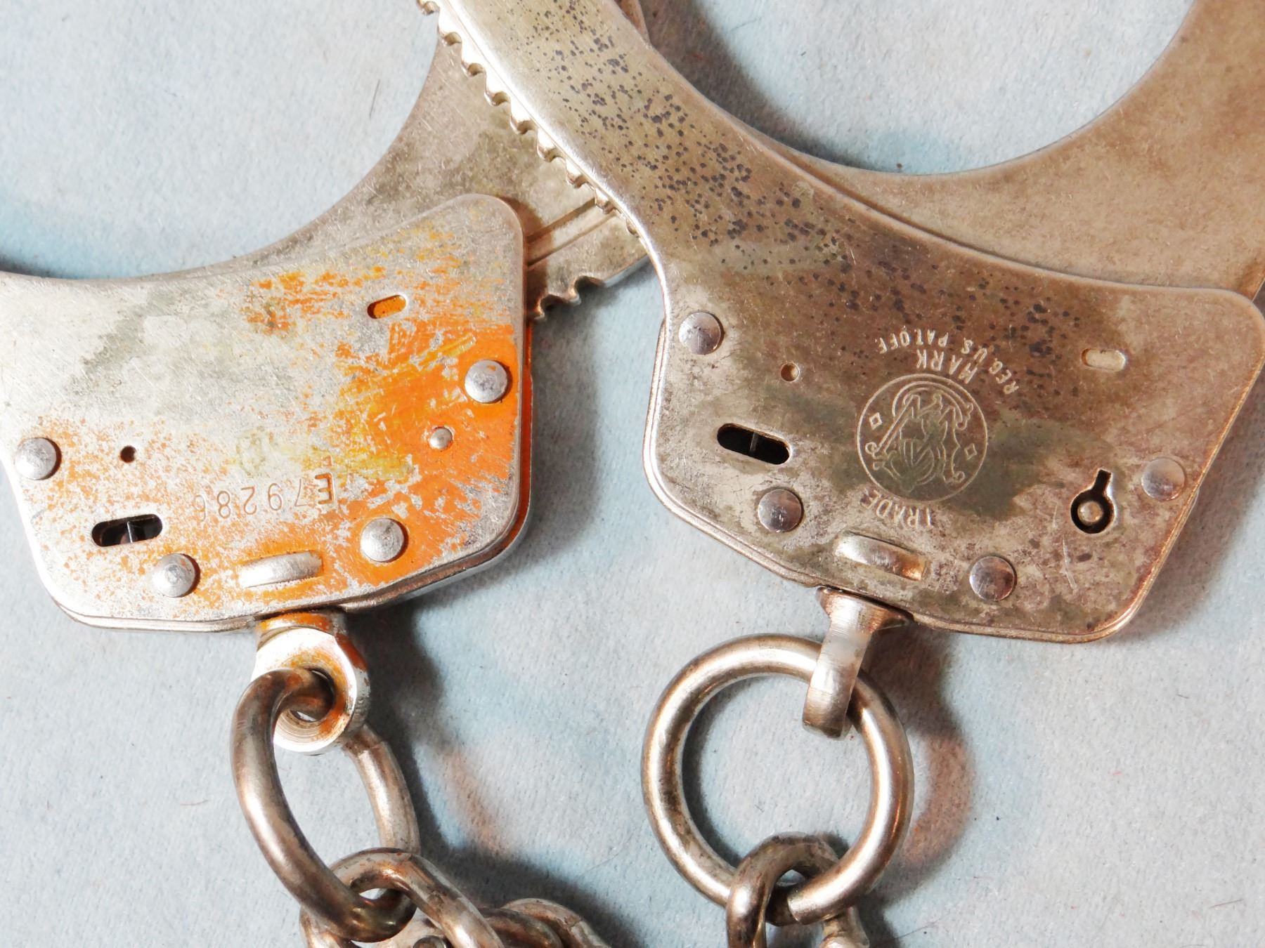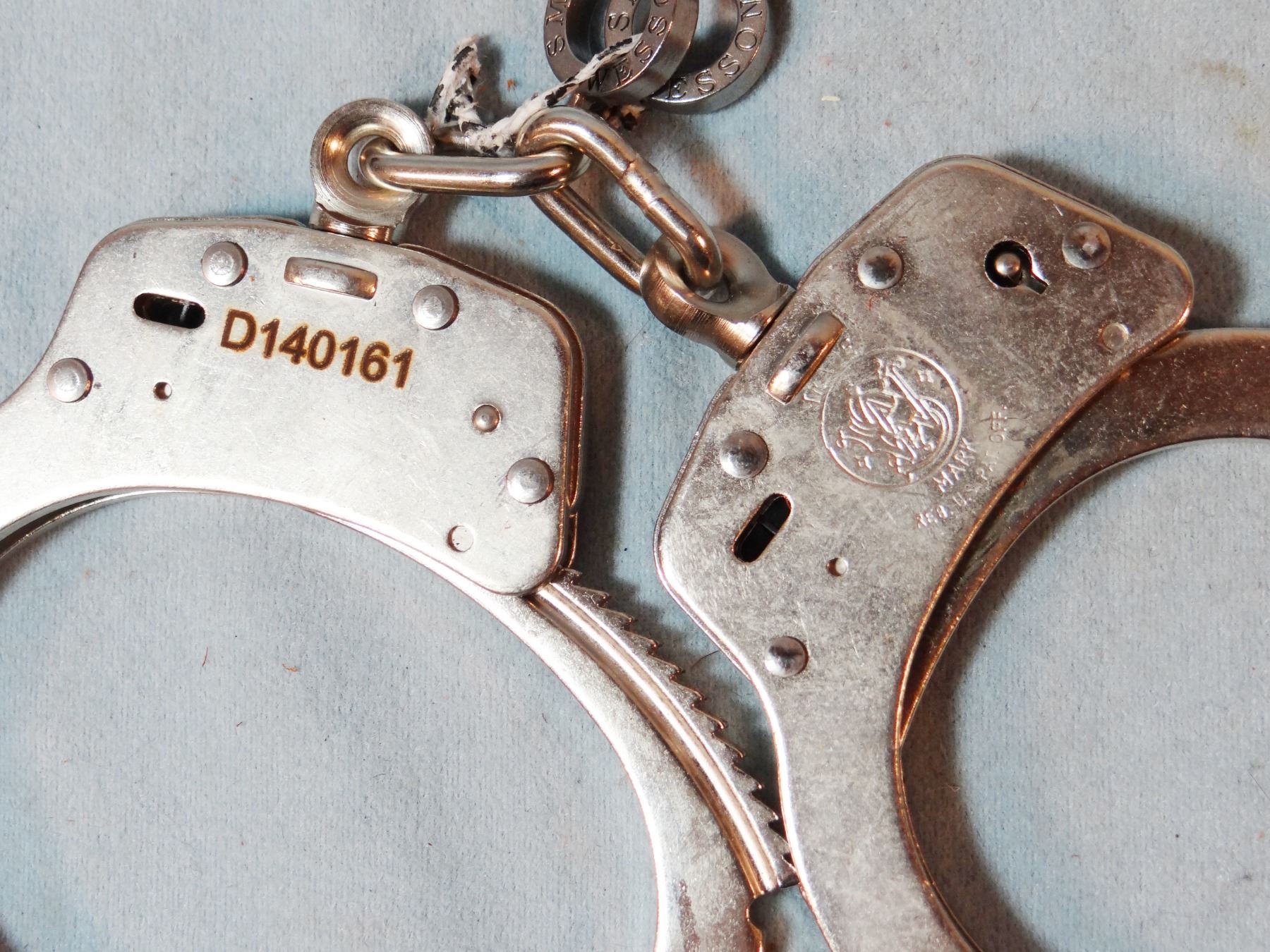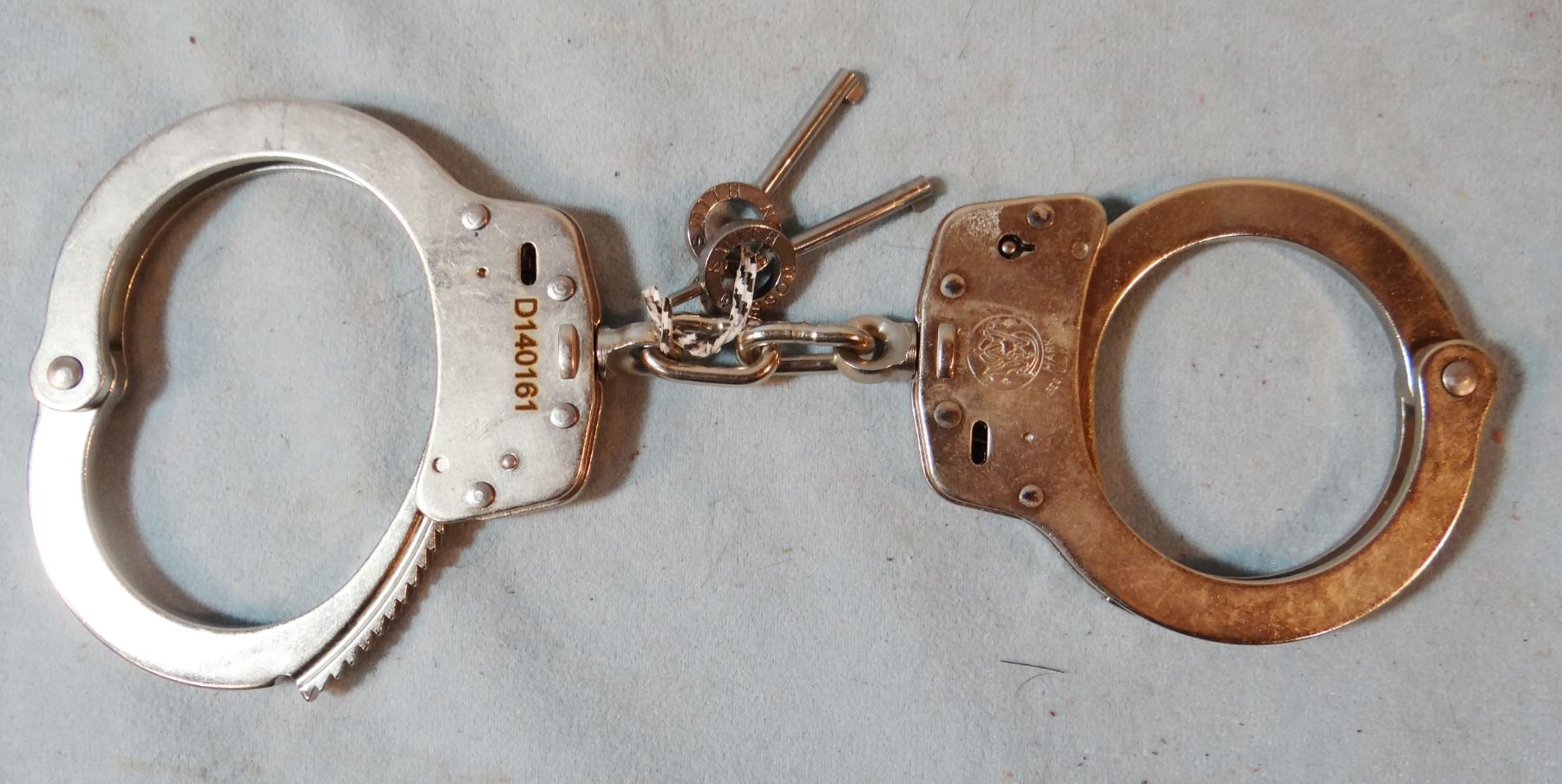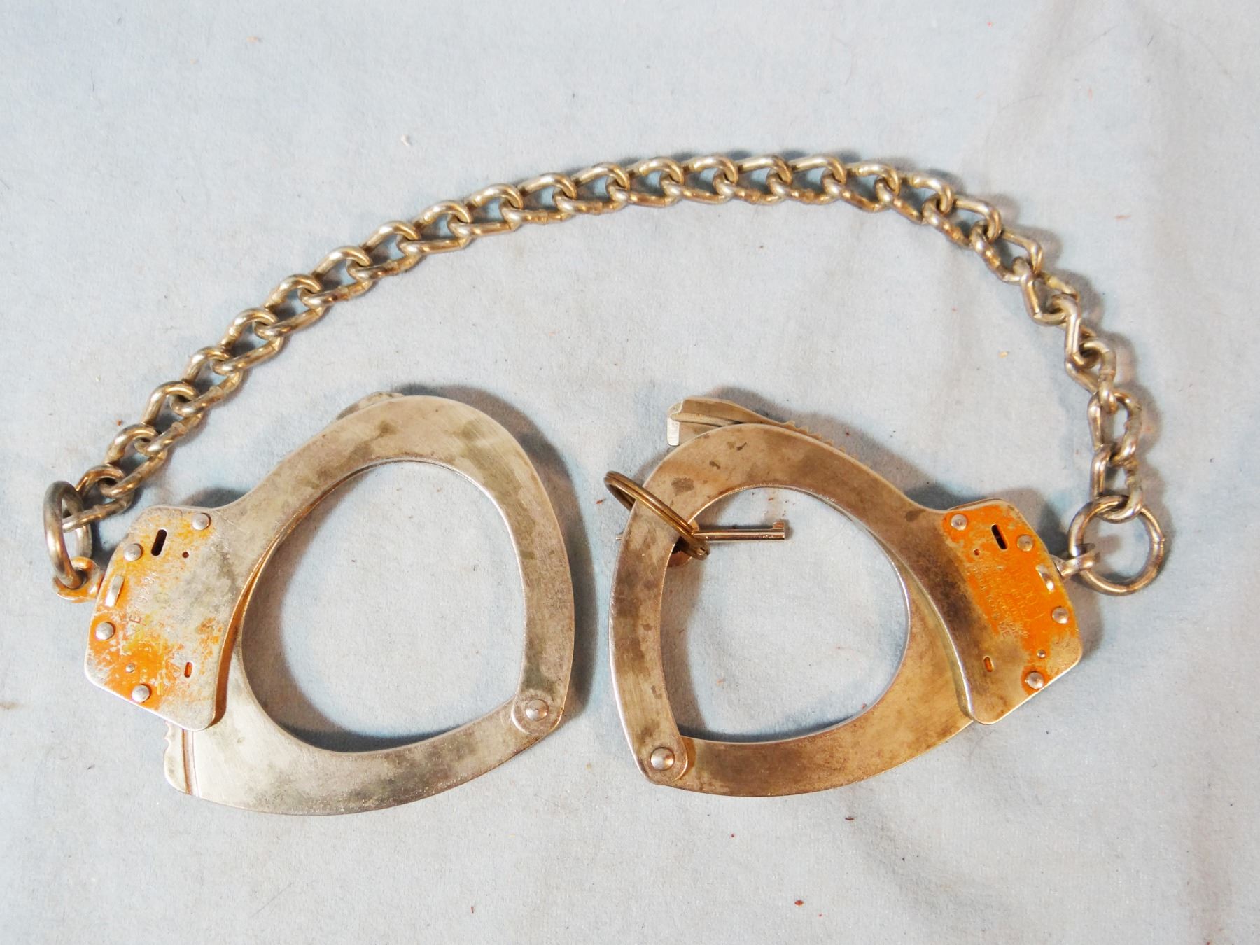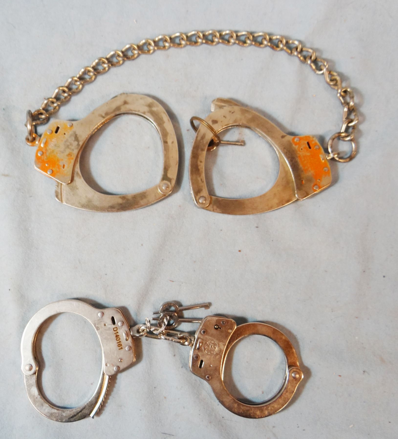 2 pcs: Smith & Wesson leg chains with key & Smith & Wesson hand cuffs with key