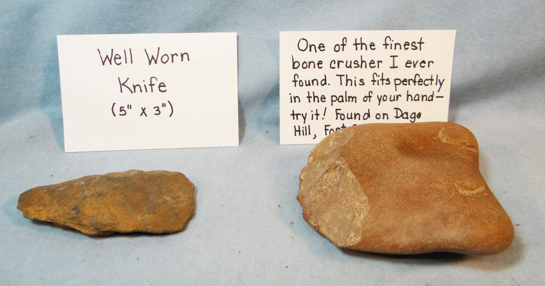 2 pcs: Stone bone crusher and stone knife, 5" x 3", Dago Hill, Fort Shaw, MT