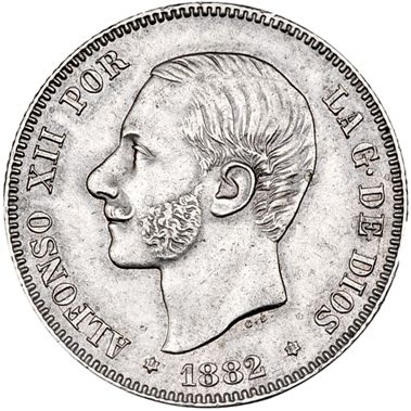 2 pesetas. 1882 *18-82. Madrid. MSM. VII-72. EBC-.