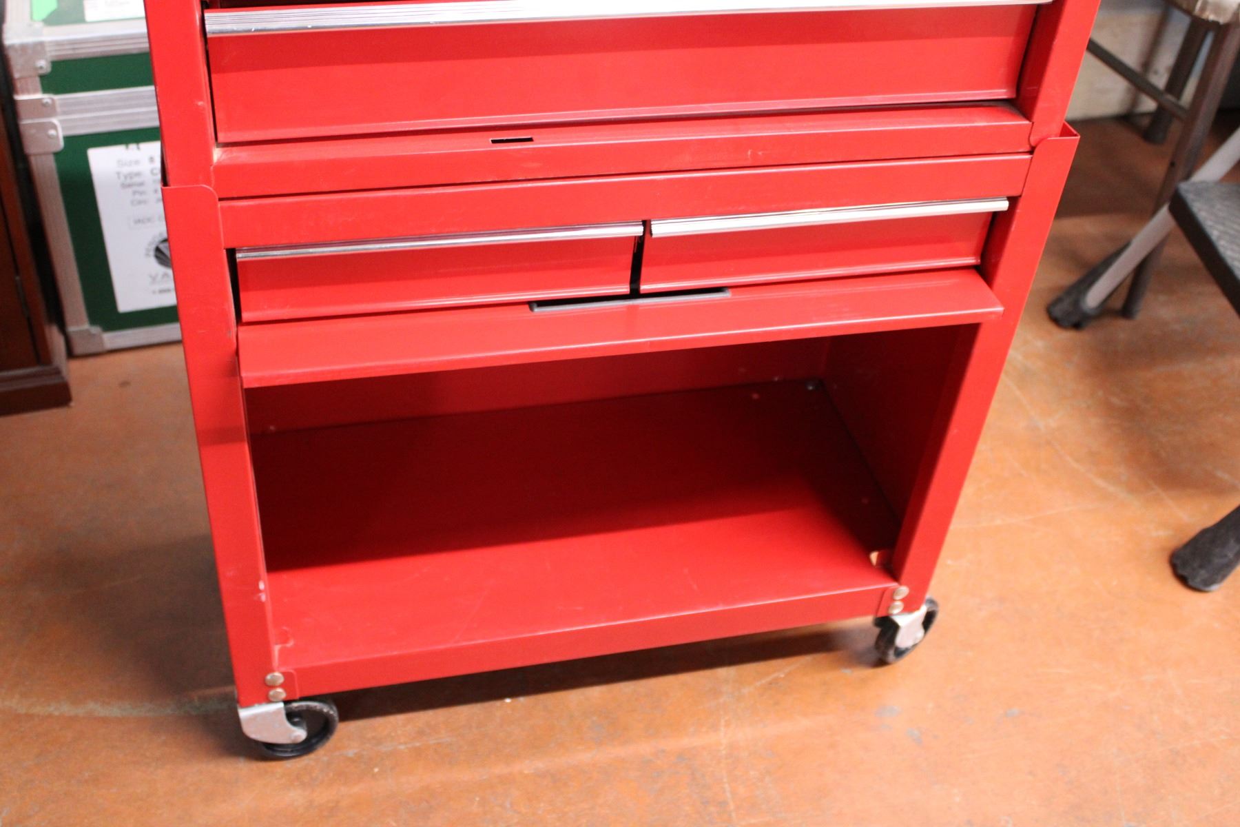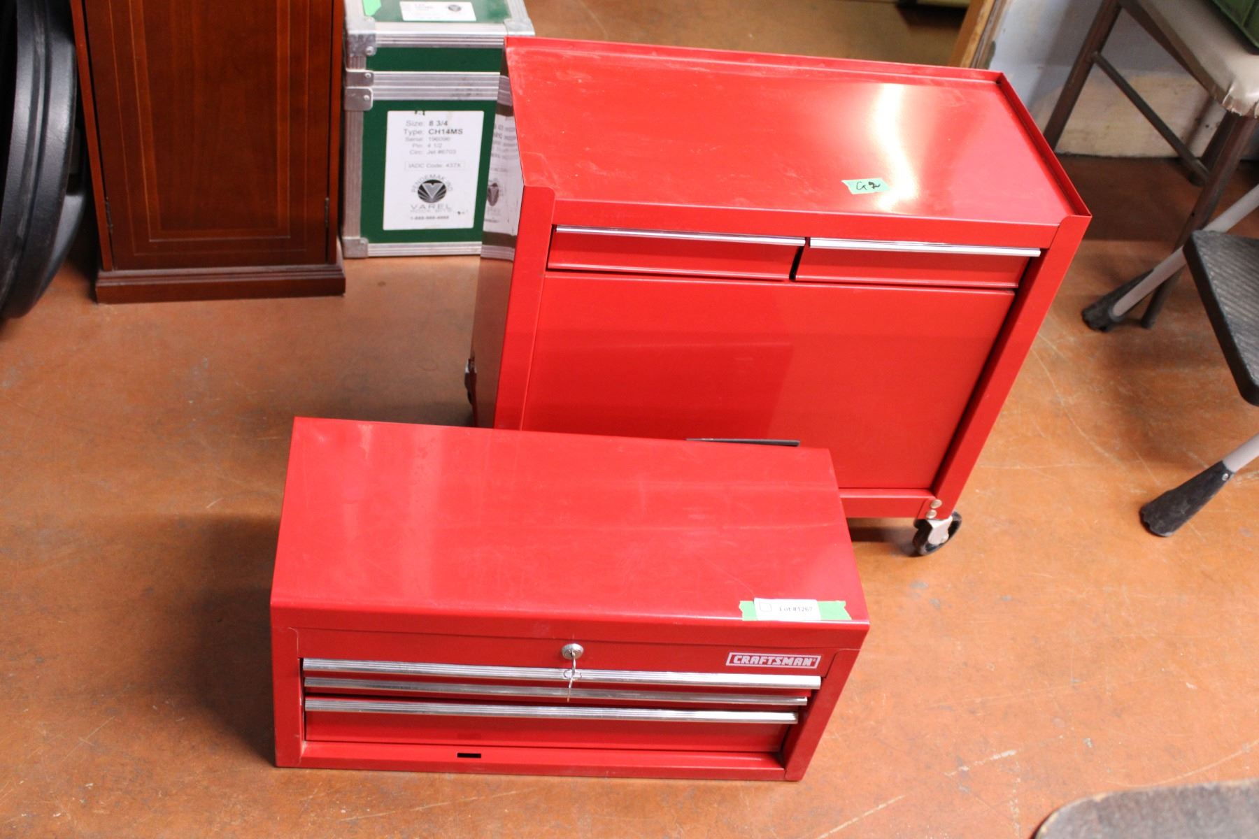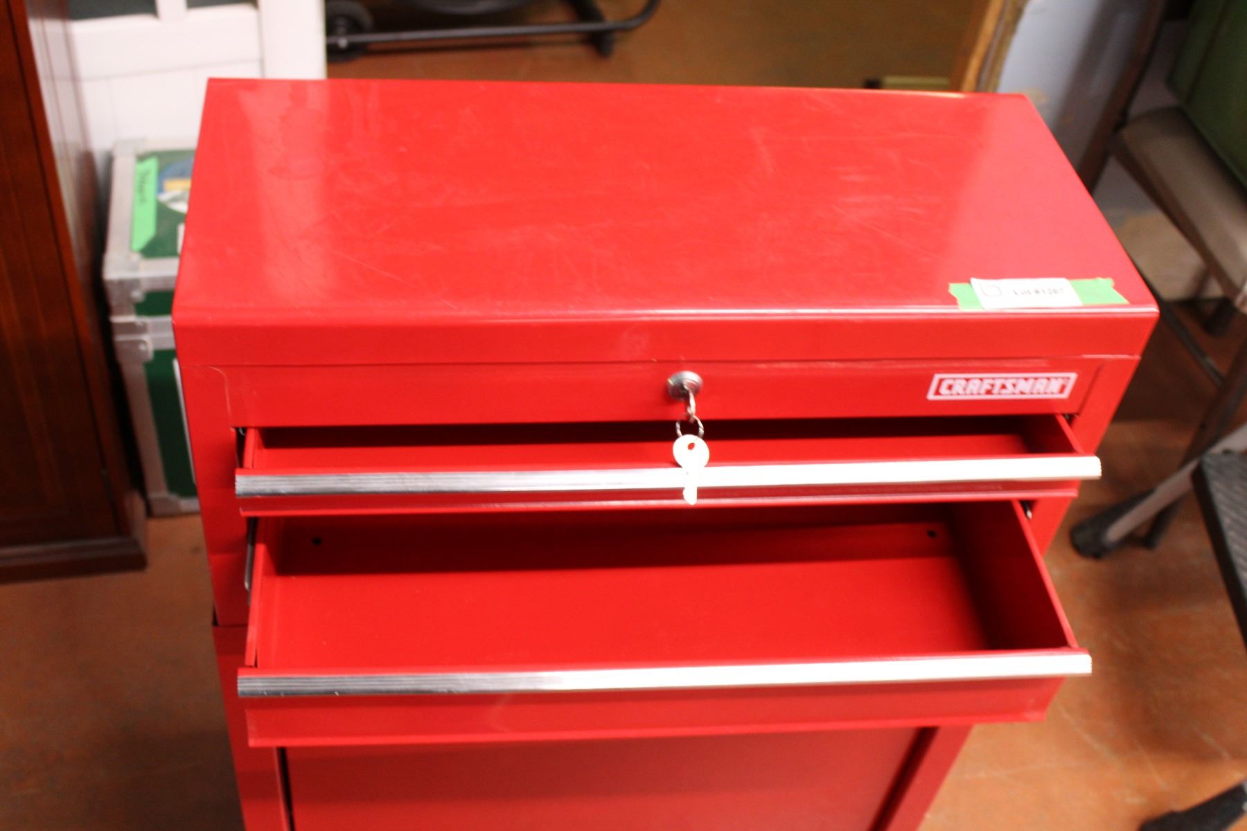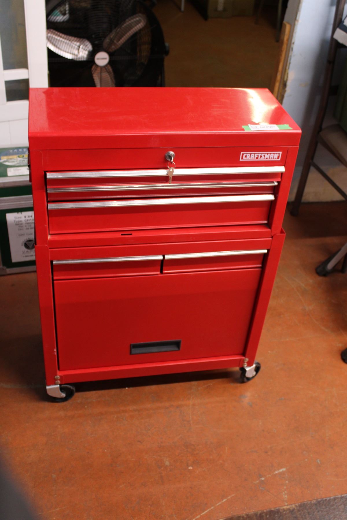 24"wide, 32" high CRAFTSMAN, - 2 piece Red Tool Box on Wheels (Keys + Locks) 3 drawer top with 2 door + 2 drawer bottom