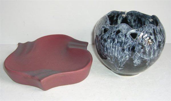 2 piece Van Briggle lot including vase & ashtray. 6 1/2 inches wide; 4 1/2 inches high.