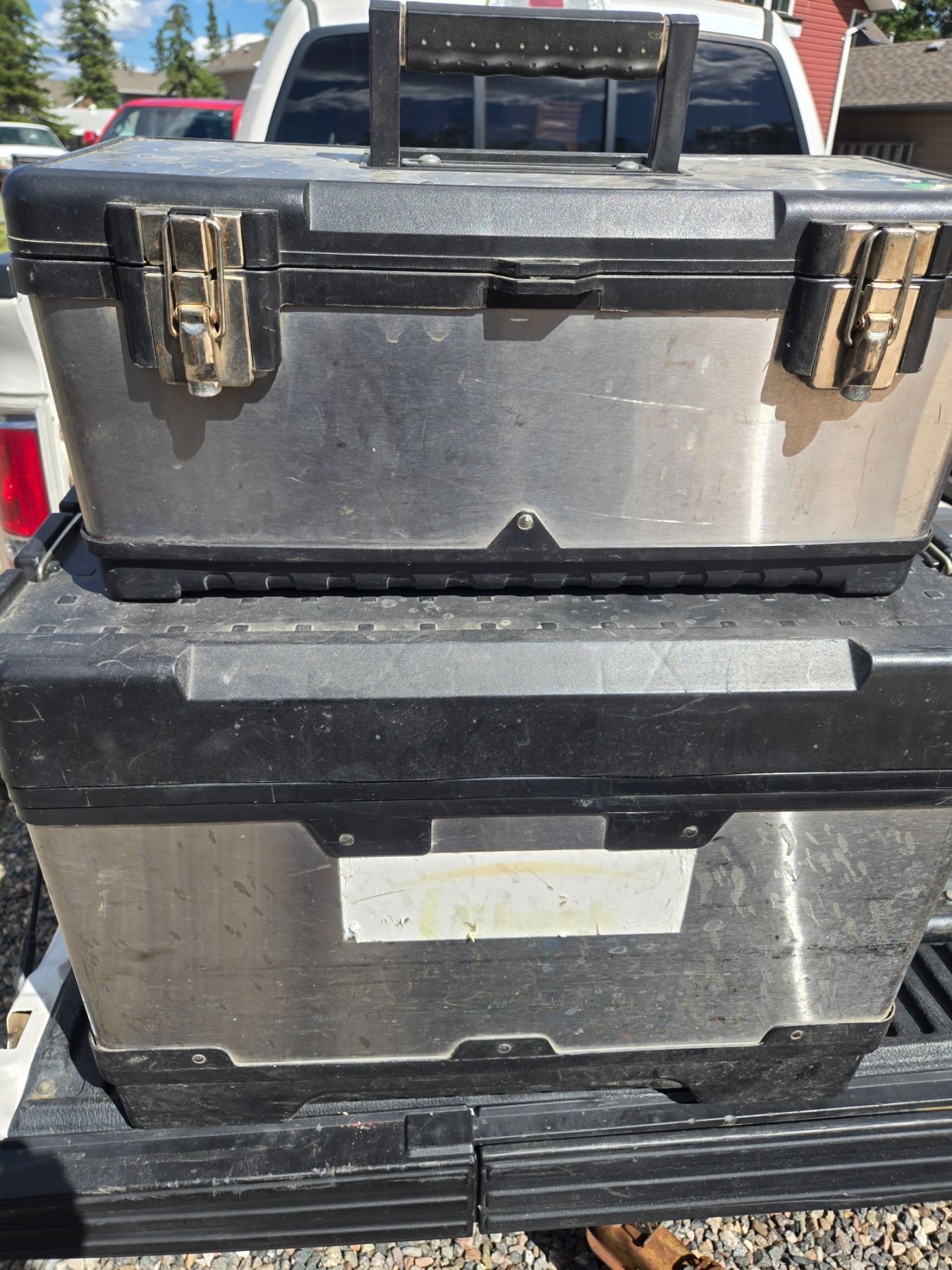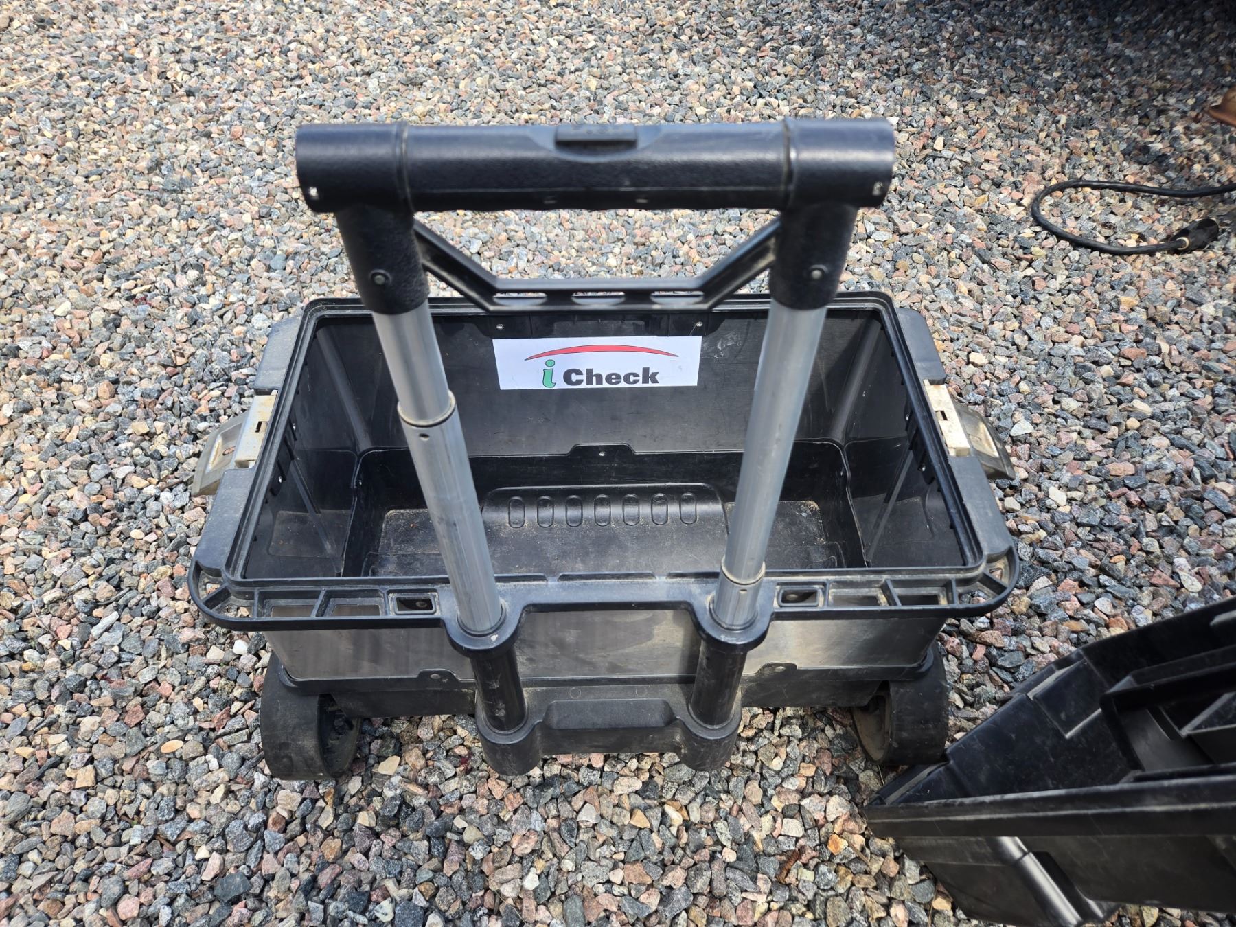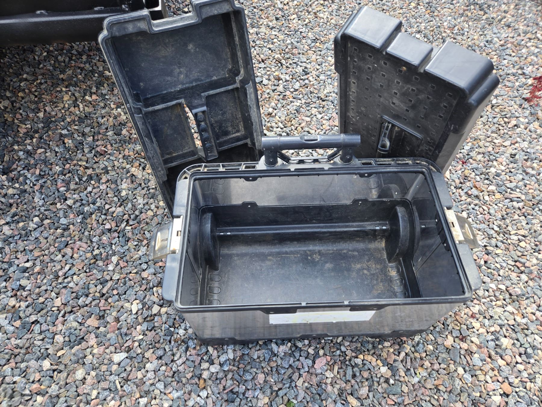 2 piece stacking tool box w/handle + wheels. no issues with either box both have a tray