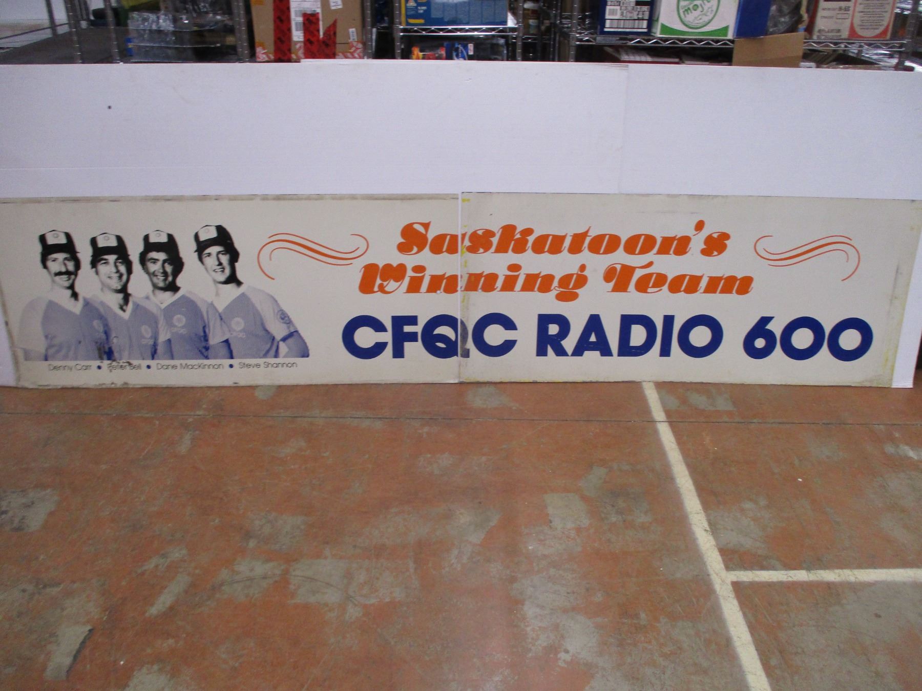 2-piece tin advertisement signs - CFQC Radio - 30" tall x 70" long (each piece - 140" total length)