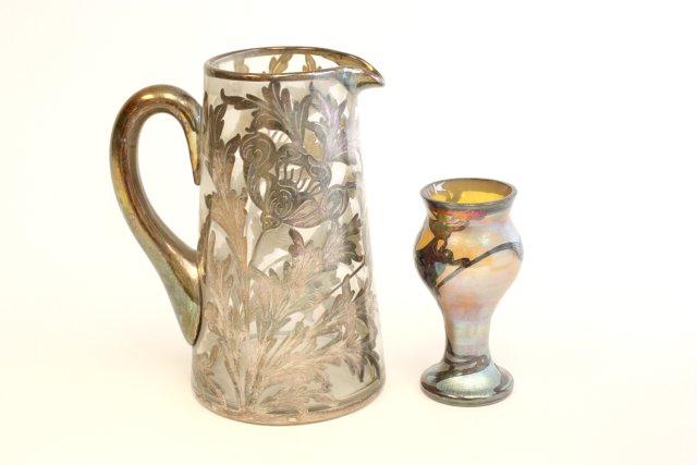 1- Unsigned art glass vase, approx. 5.25" H. 1- Pitcher, approx. 8.5" H. Please read our terms of sale.