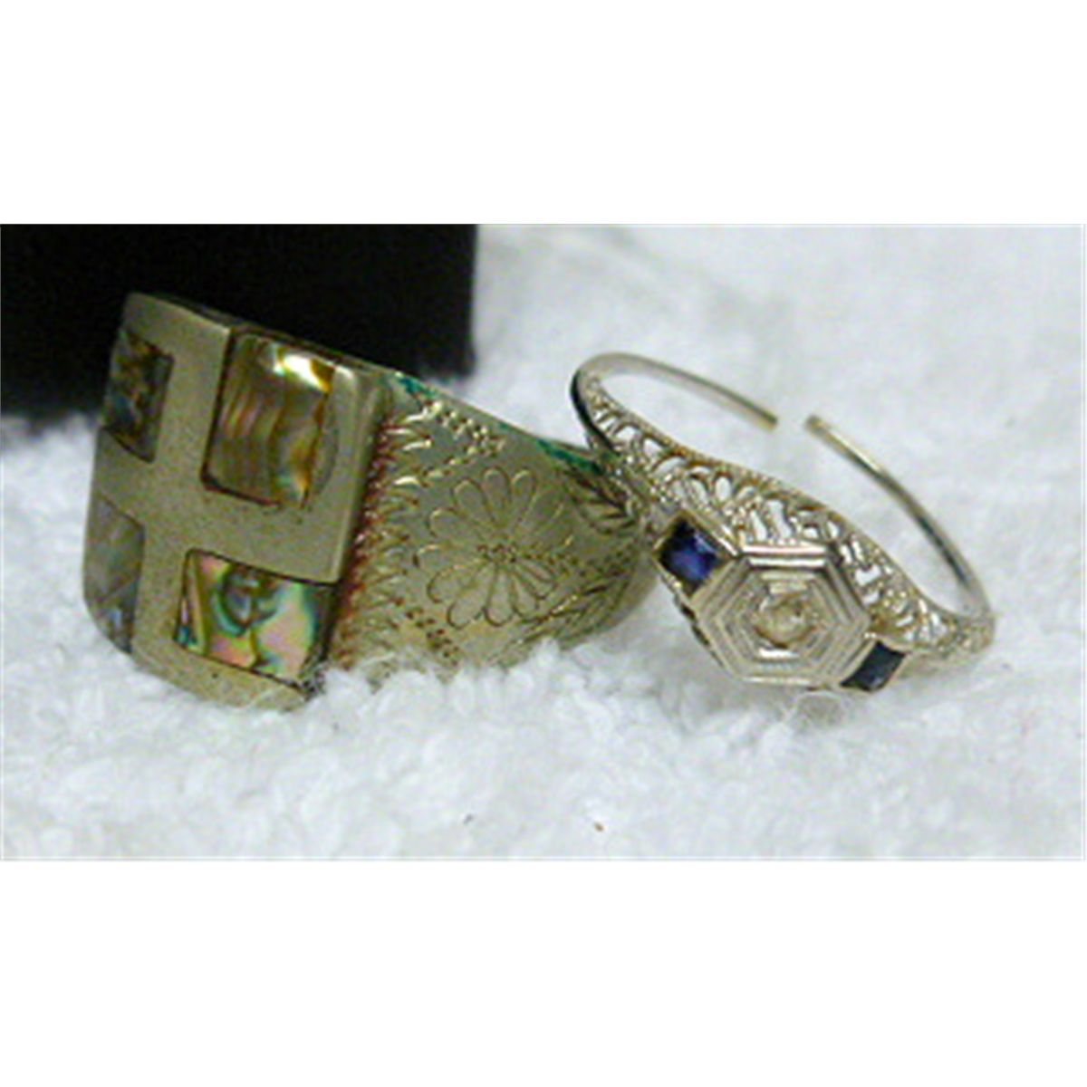 2 rings - total point 230 ounce - men's silver with mother of pearl - other old princess 14Kt with crystal and blue stones split open - pinkie size