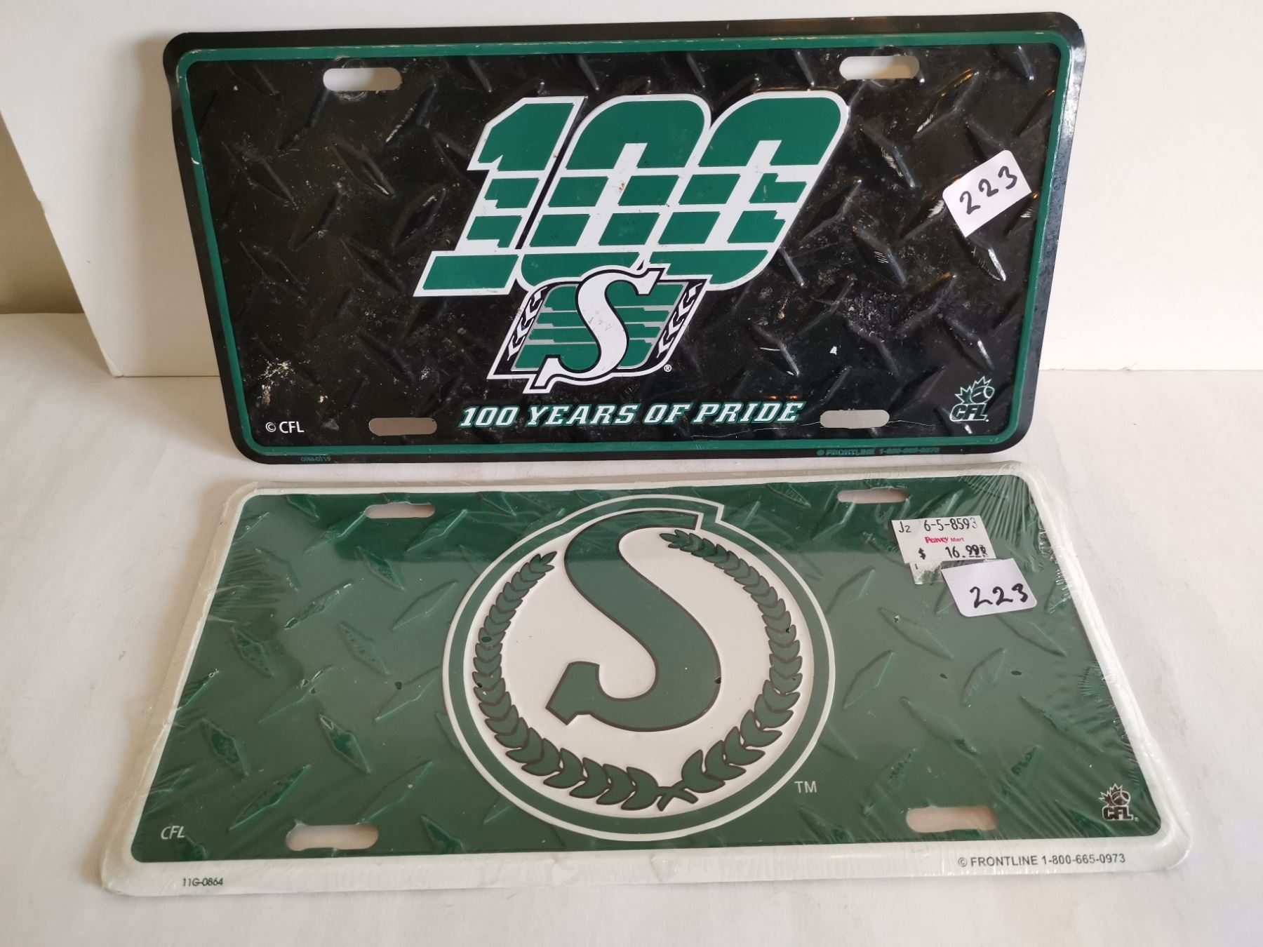 2 sask roughriders plates