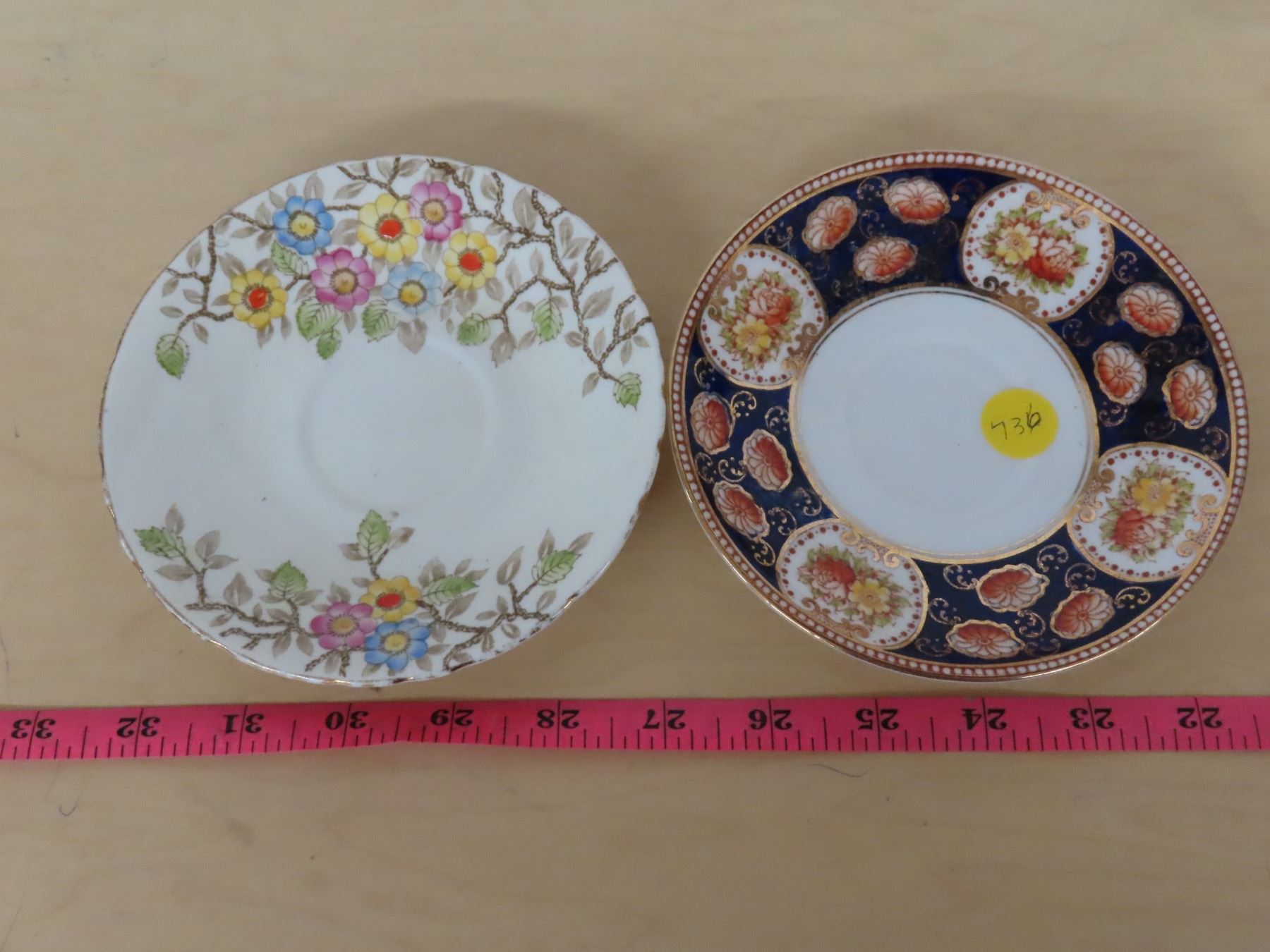 2 saucers- delphine china+ royal albert gold trim saucer