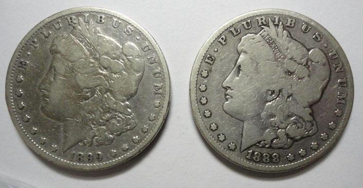 2 scarce date Morgan $ 1888S and 1899 VG/F