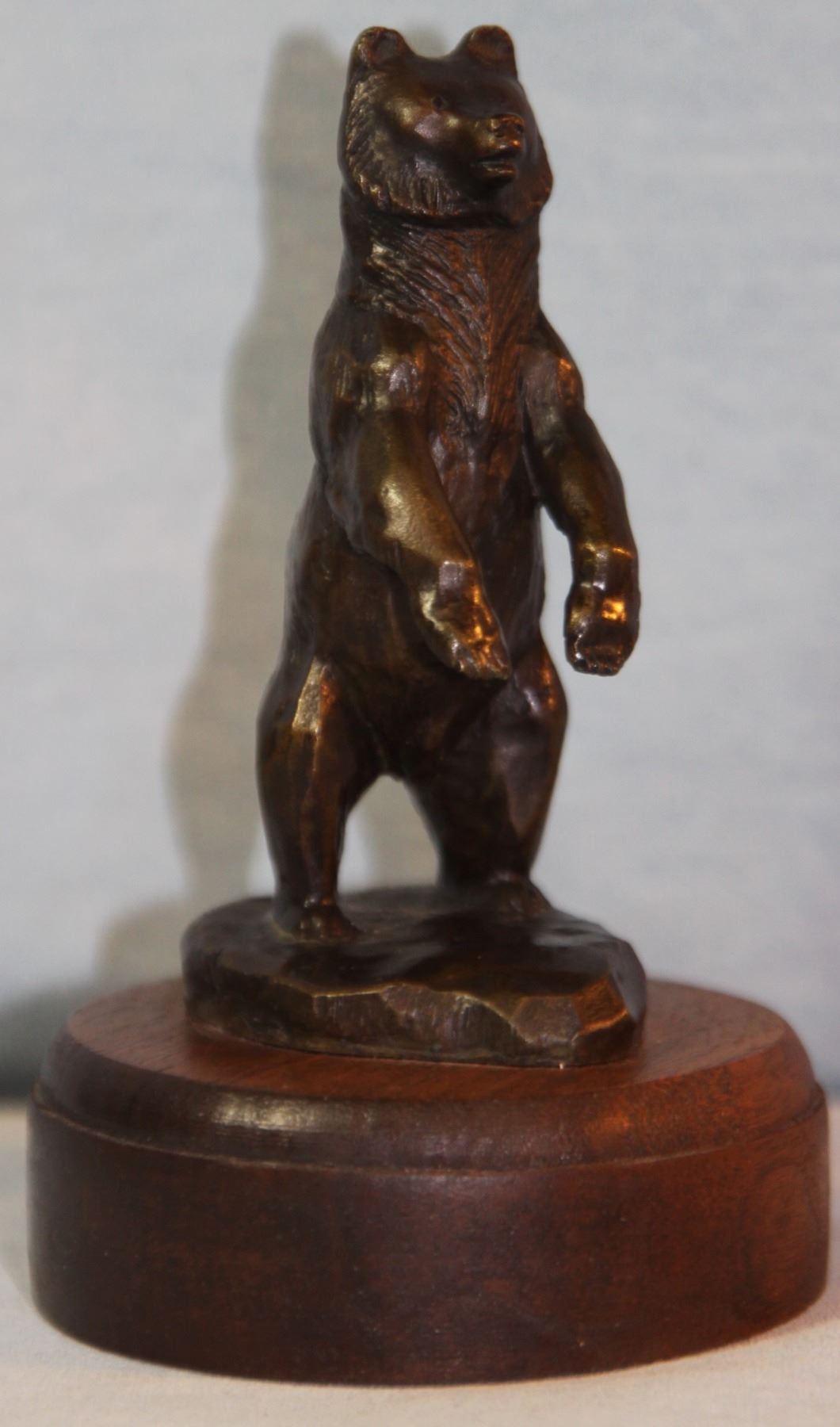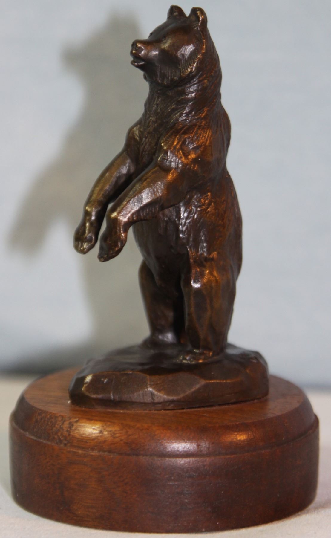 2 sculptures: Welliver, Les, Young Bear, 3/100, 4" h x 2" w x 2" d and Ream, Don , Trouble Maker Bear, 3" x 3" x 3"