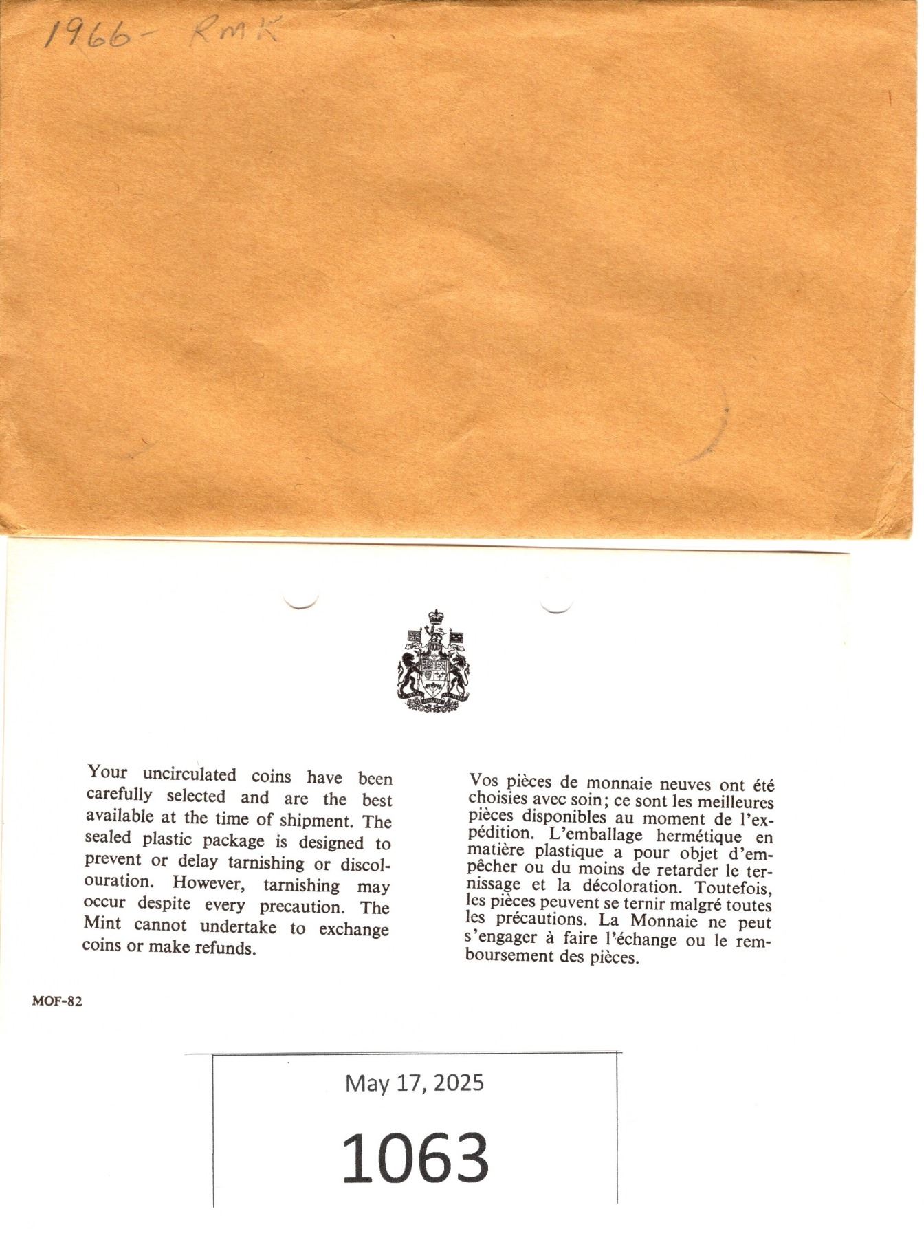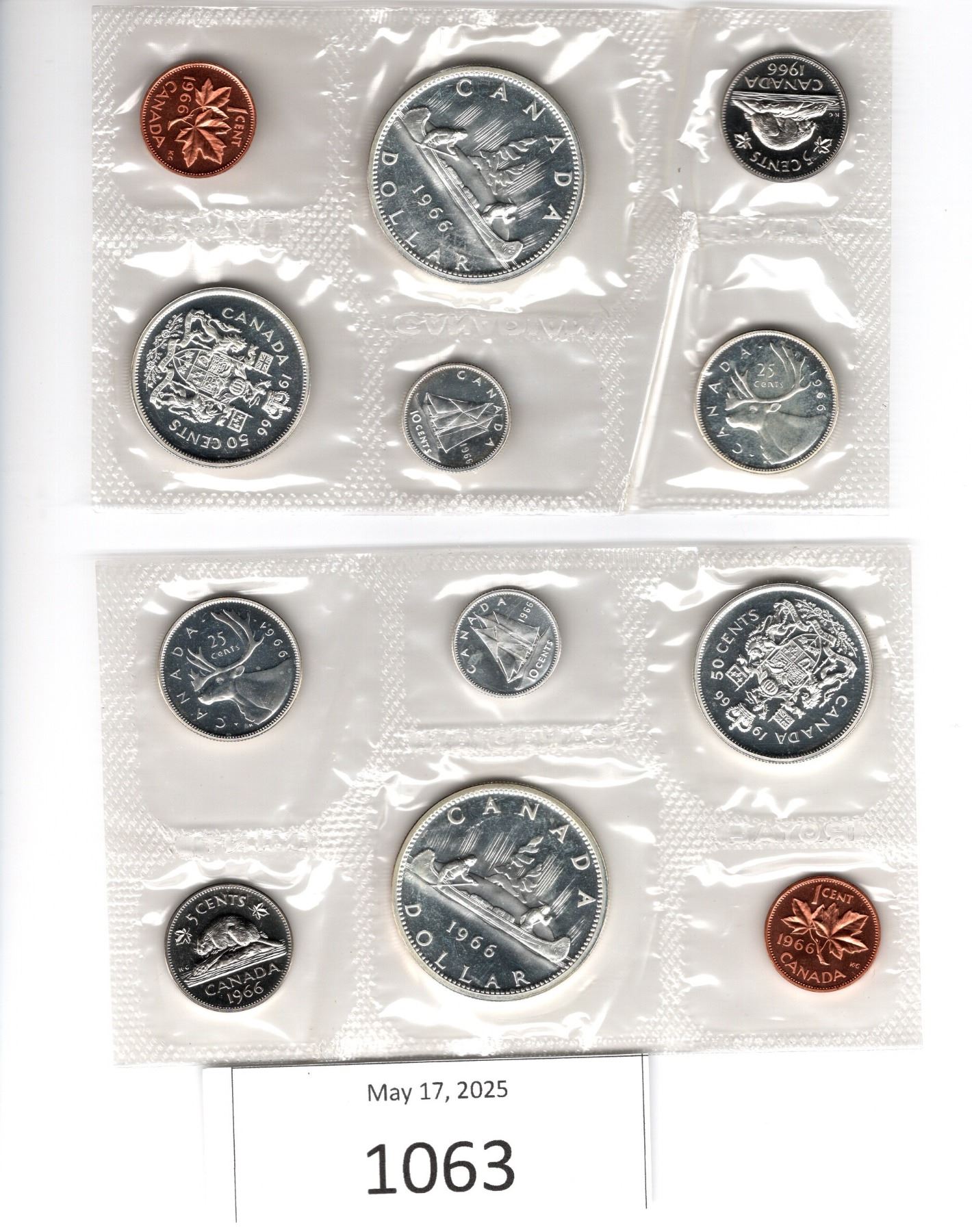 2 sets 1966 Canadian Uncirculated 6 coin sets in original mint envelopes with information card