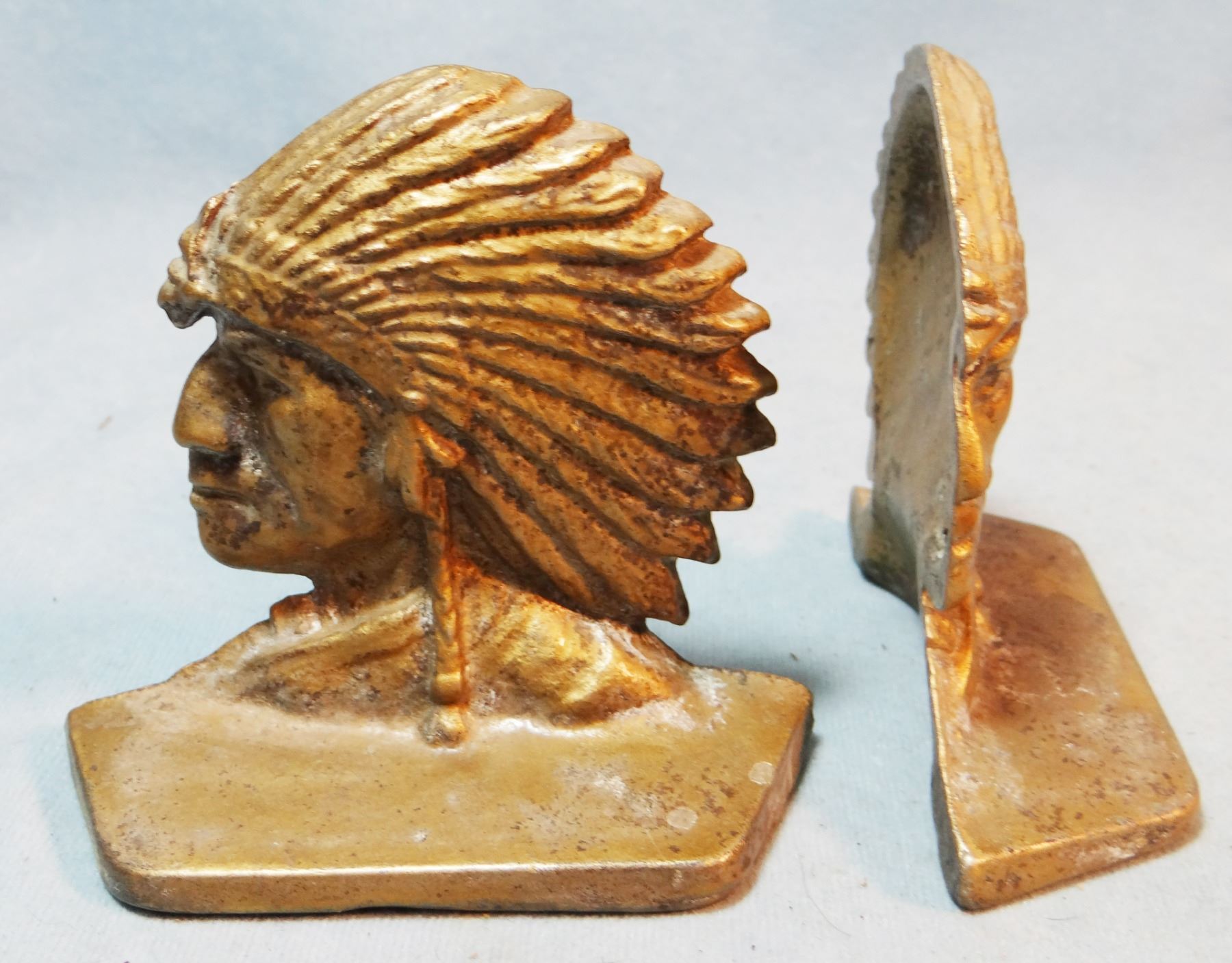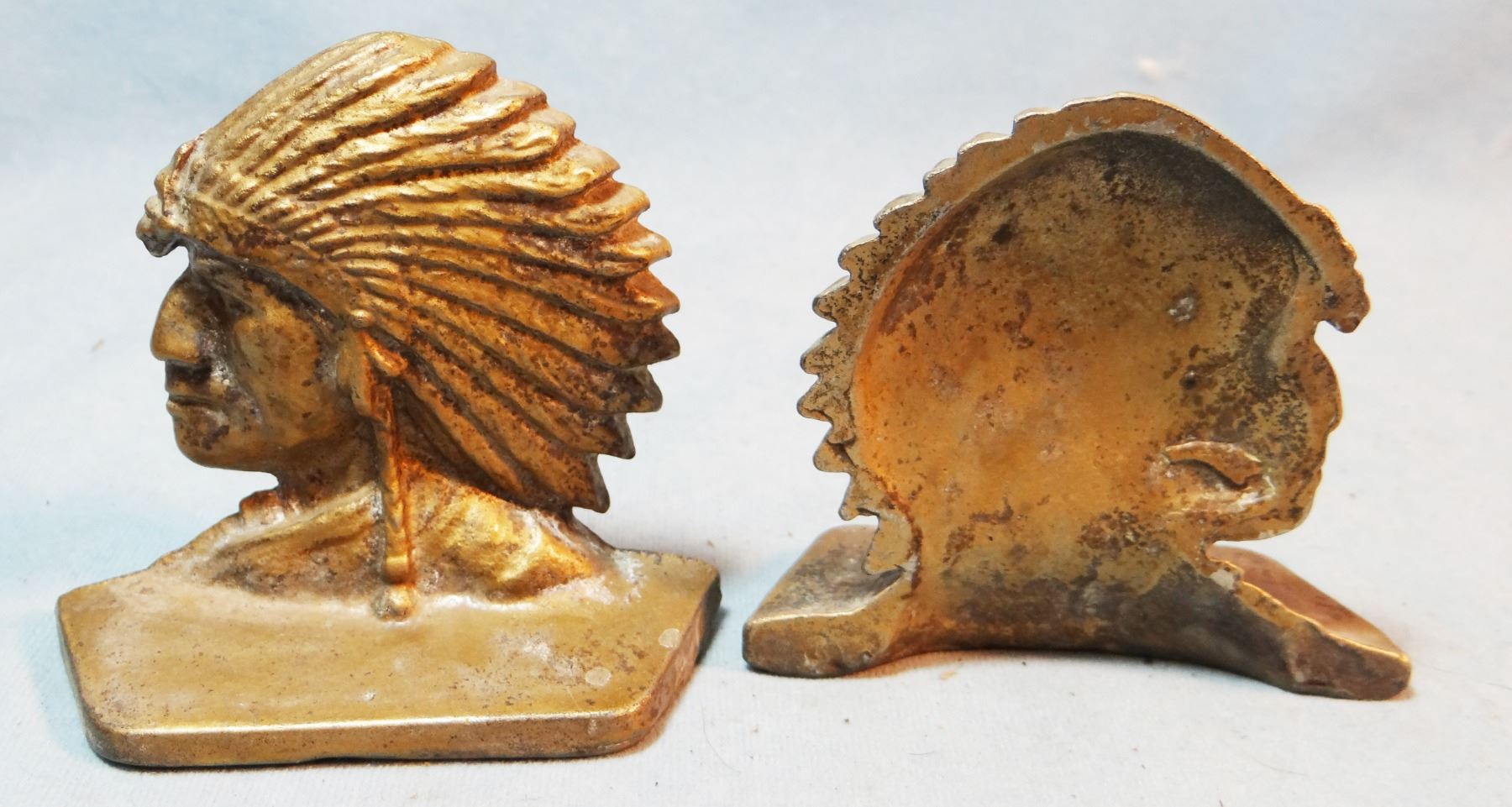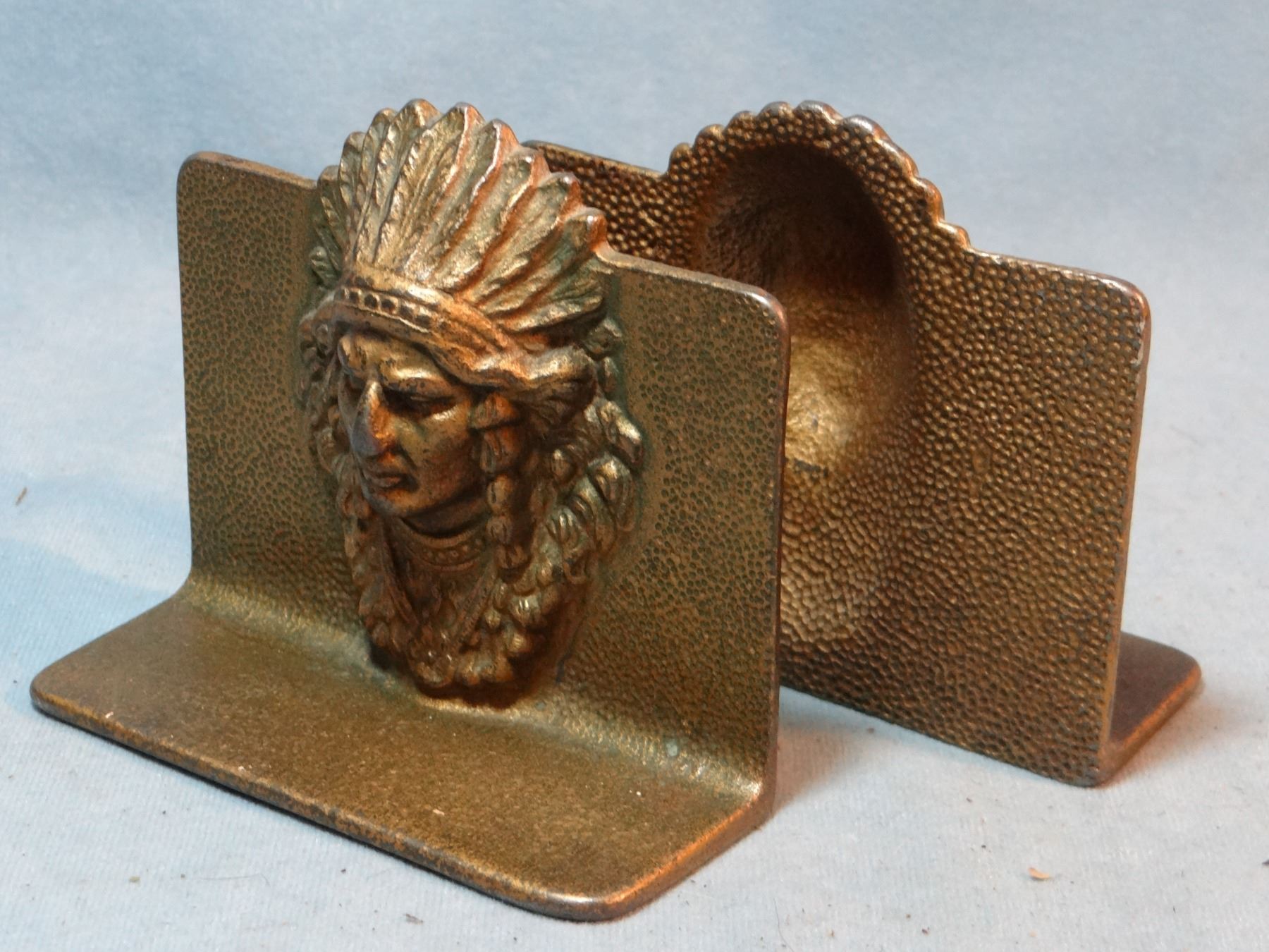2 sets of Indian w/warbonnet bookends, metal, all are 4 ½" x 3 3/4"