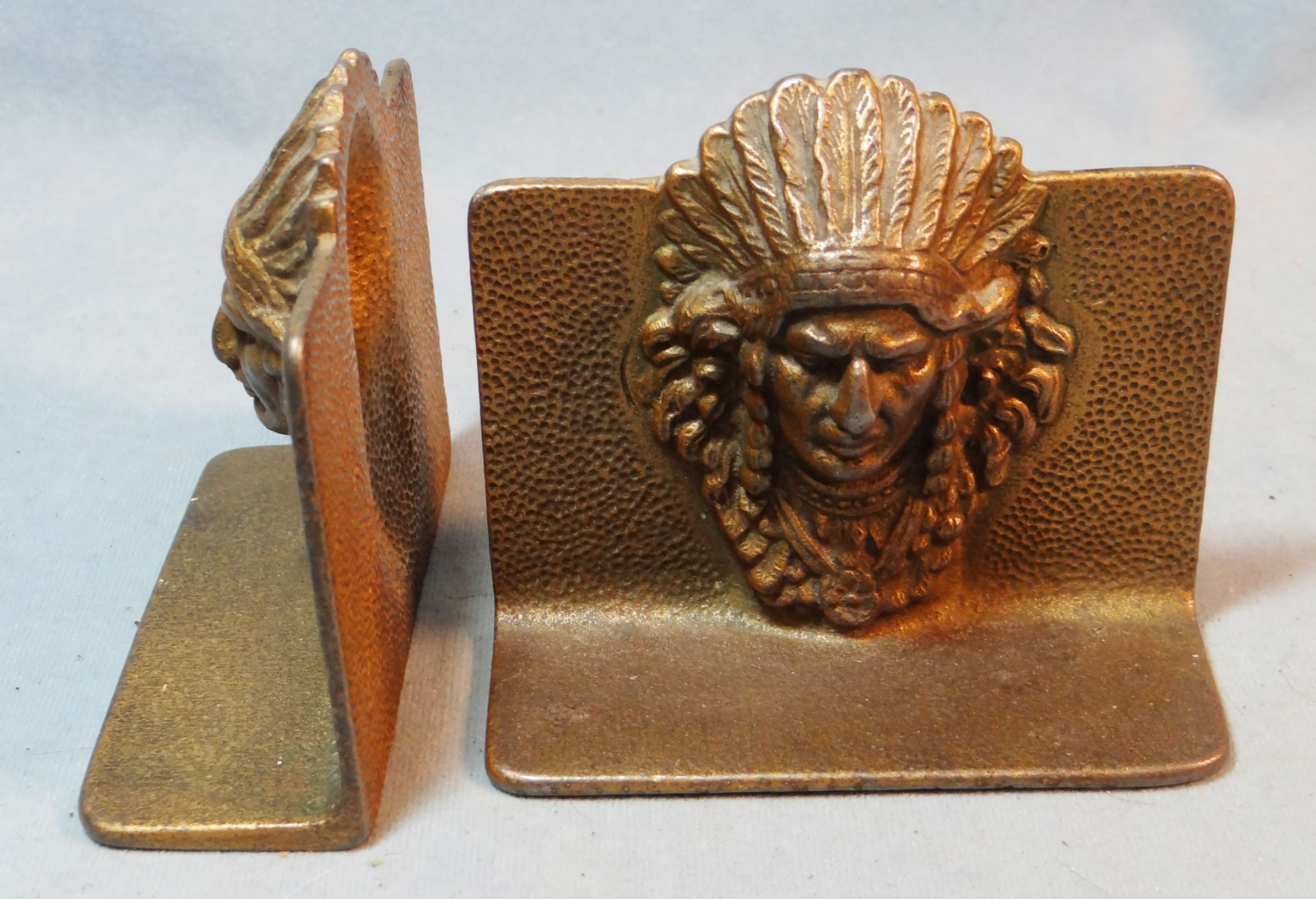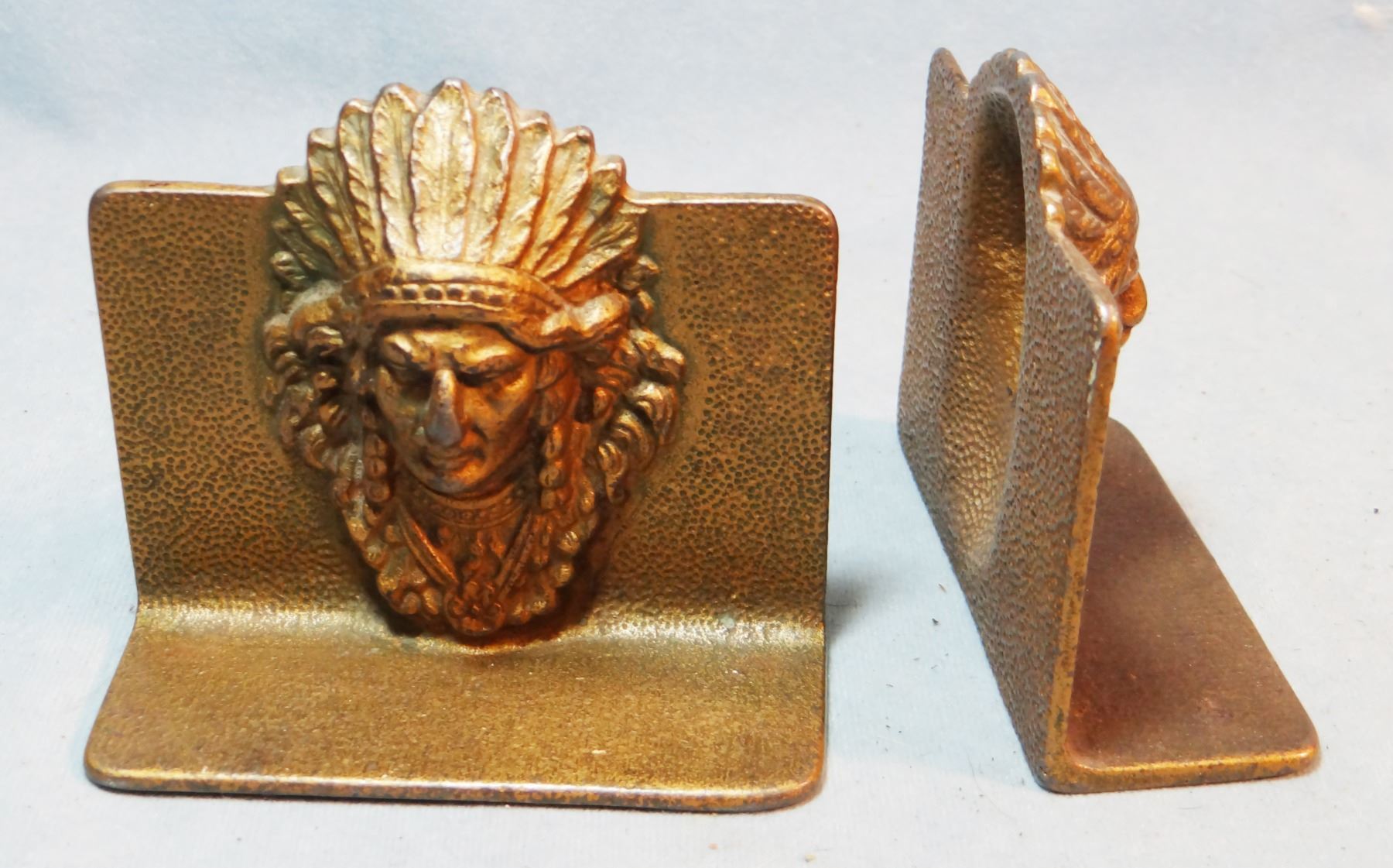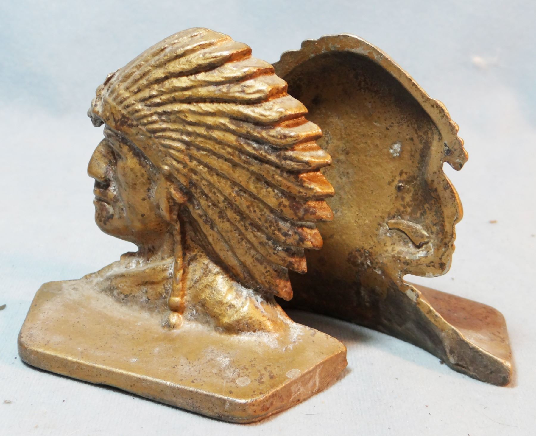 2 sets of Indian w/warbonnet bookends, metal, all are 4 ½" x 3 3/4"
