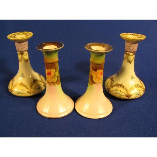 2 sets of Japanese candlesticks, I E & C co., 5 ½" and Noritake 5 ½", handpainted