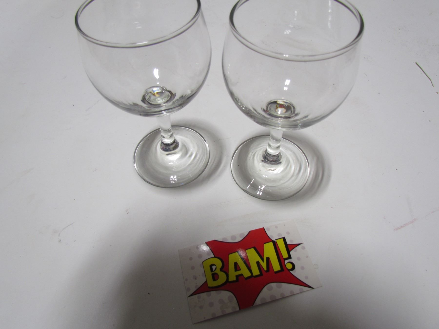 2 short stem wine glasses