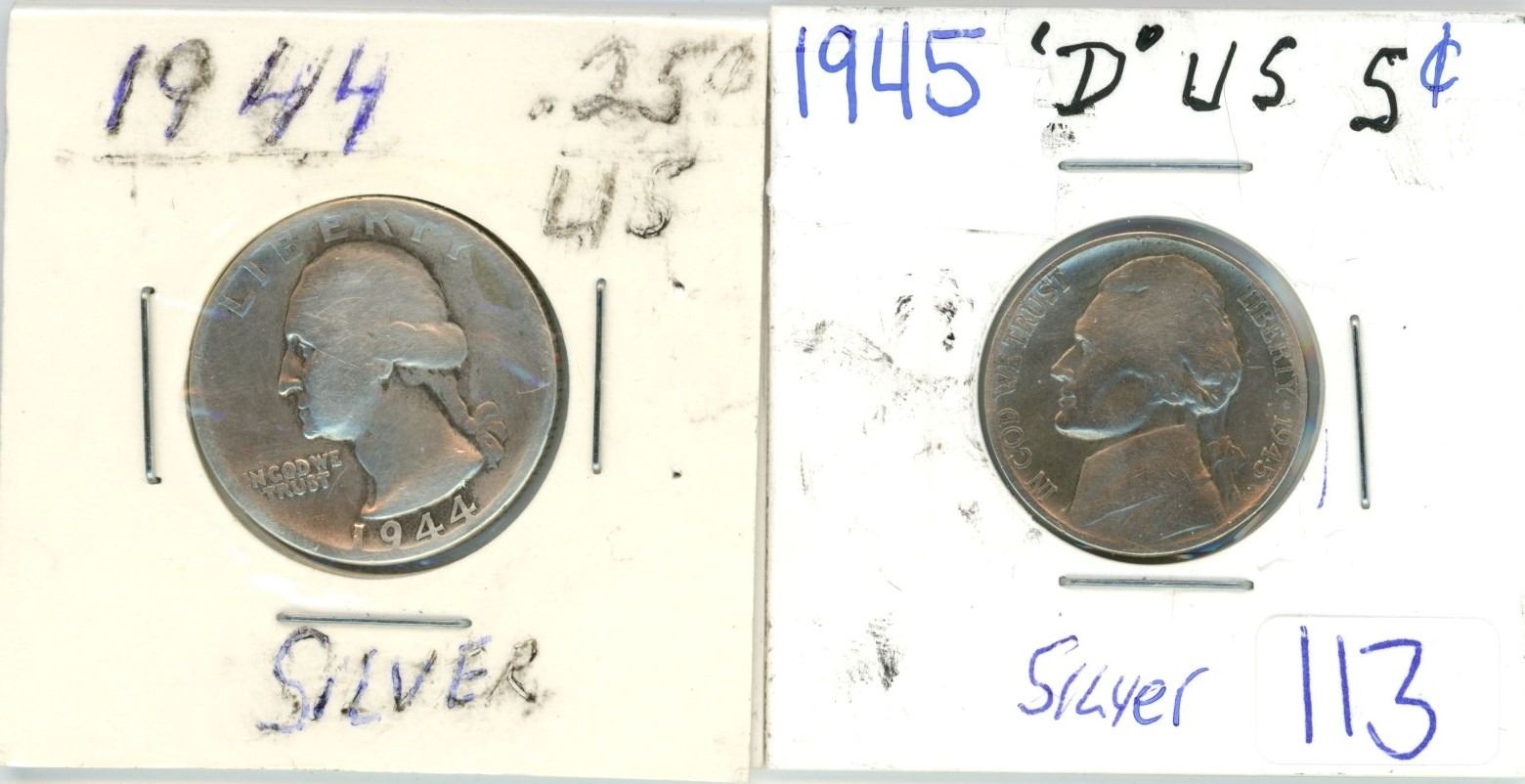 2 silver US 5¢ coin 1944, 1945