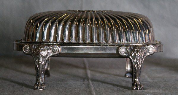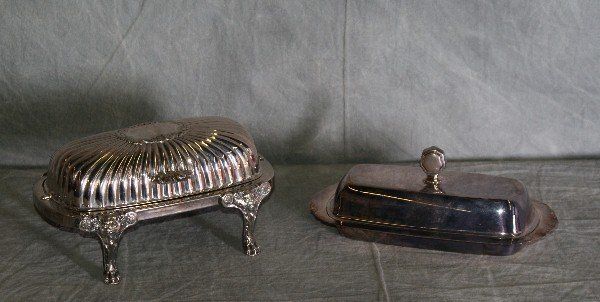 2 silver plate butter dishes. Largest H:4" L:7.5"