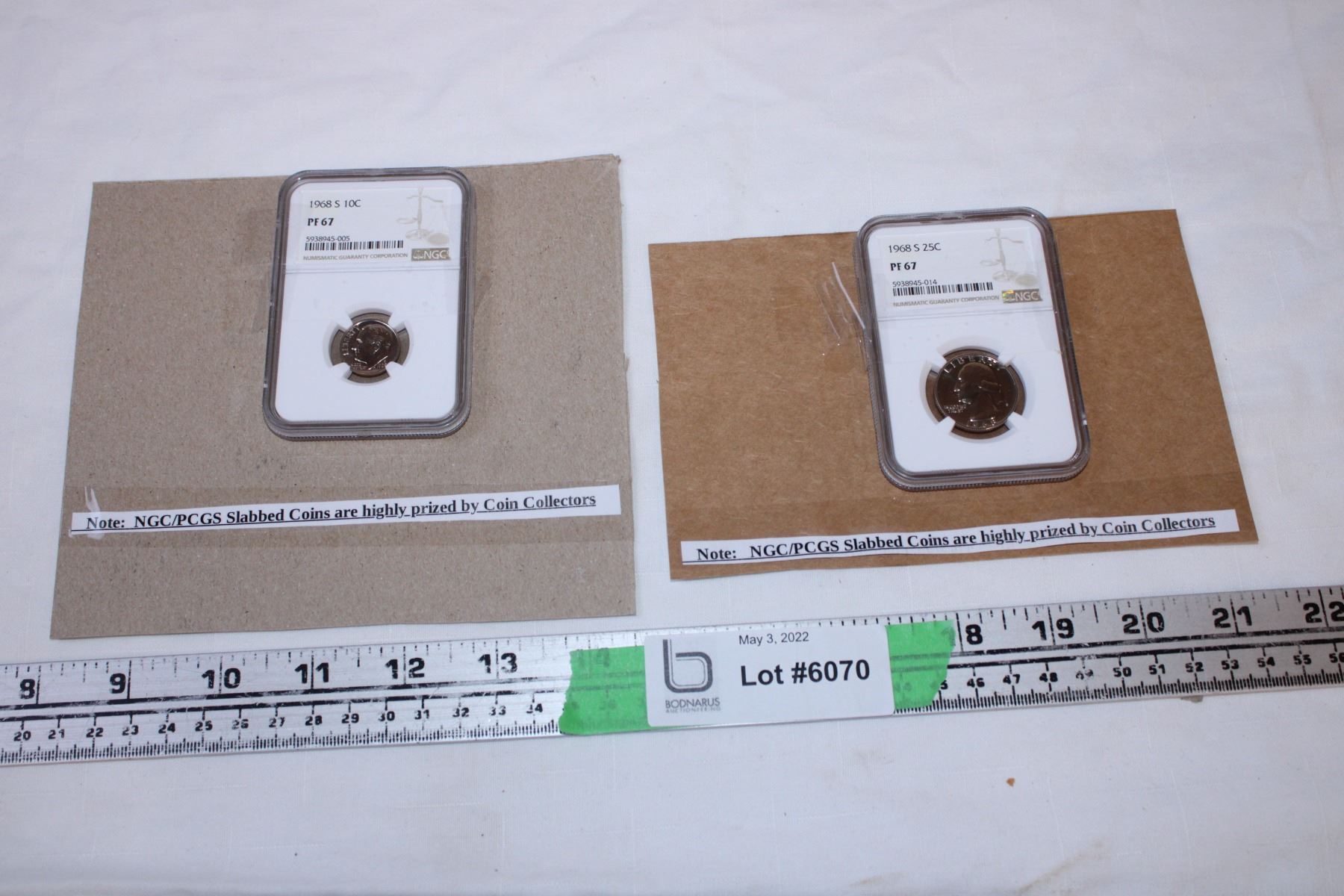 (2) slabbed coins - 1968 10 cent + 1968 25 cent