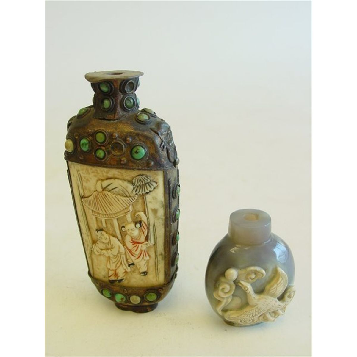 1- Ivory & metal. 1- Stone. Largest approx. 4.25" H. Please read our terms of sale.