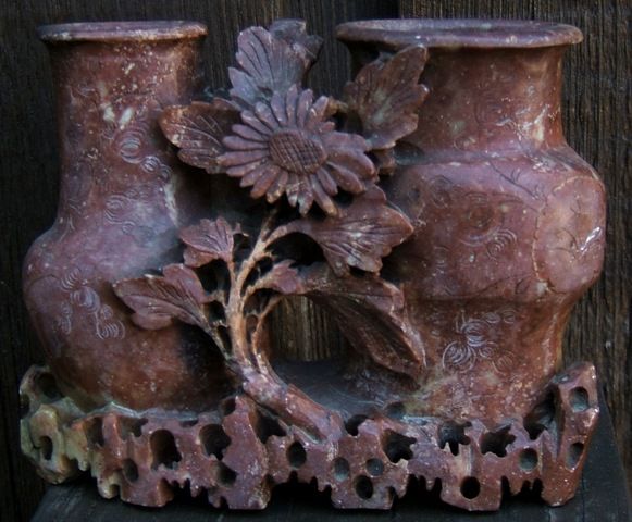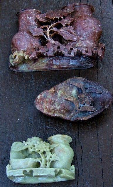 Early 20th c., Including: 1- Carved double bud vase with flowers, approx. 4" H x 5.5" W. 1- Carved vase, approx. 2" H x 3.75". 1- Small "Floral" carving, approx. 4" x 2.5". Please read our terms of sale.