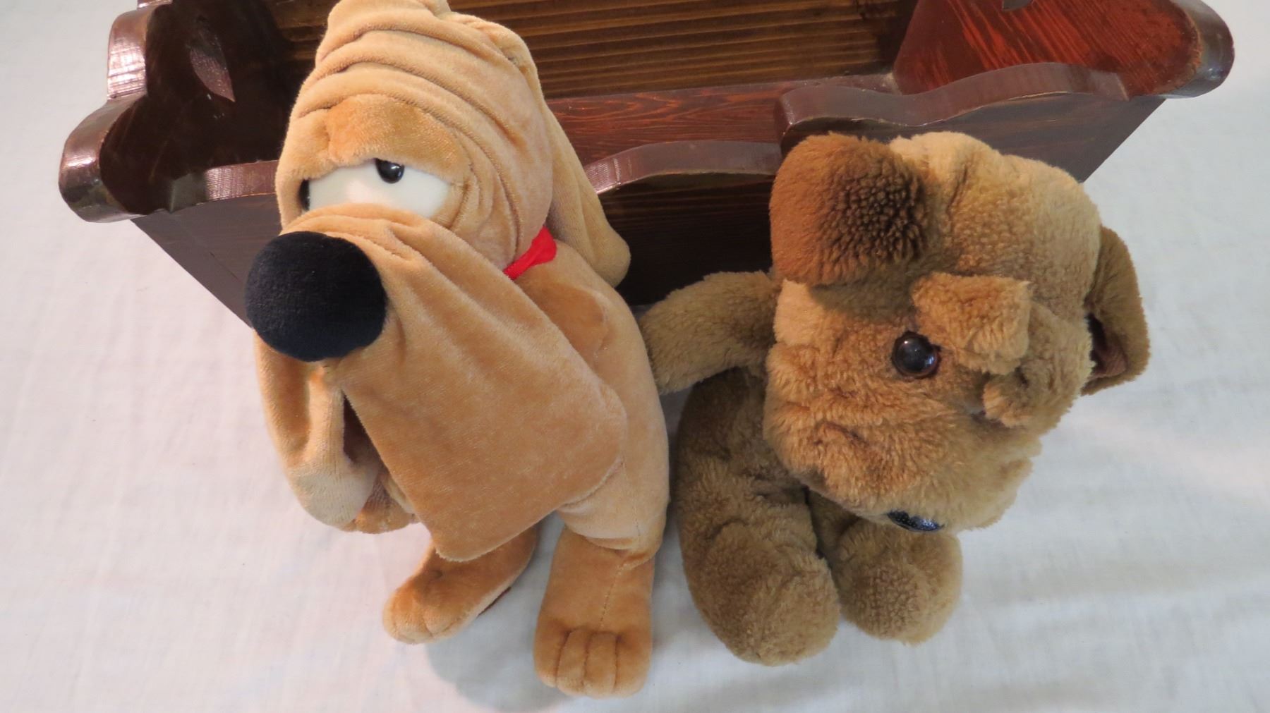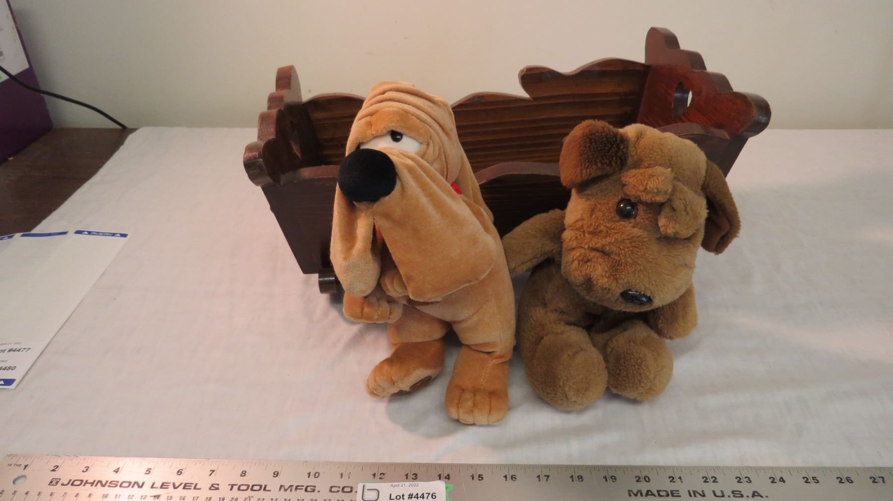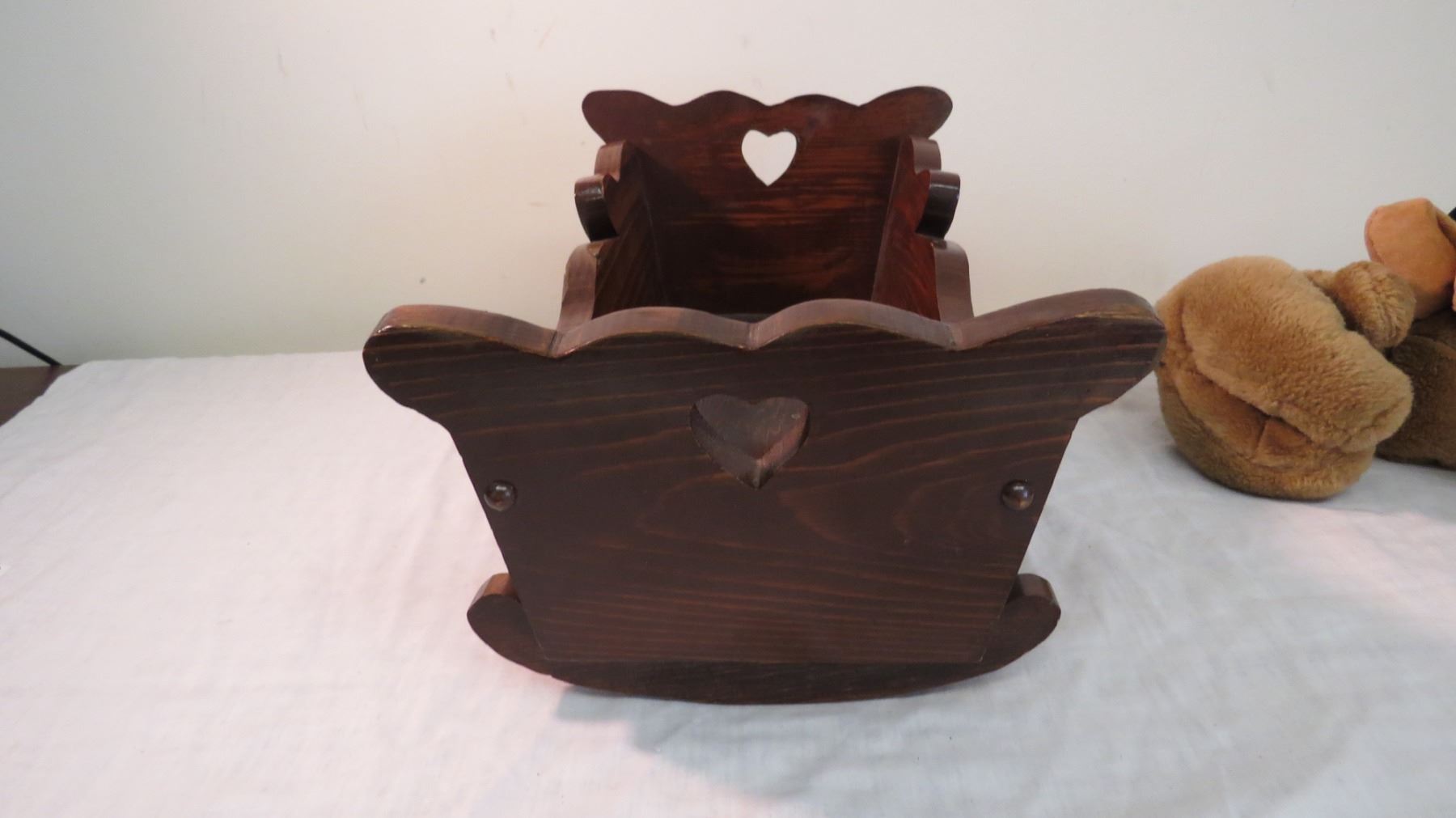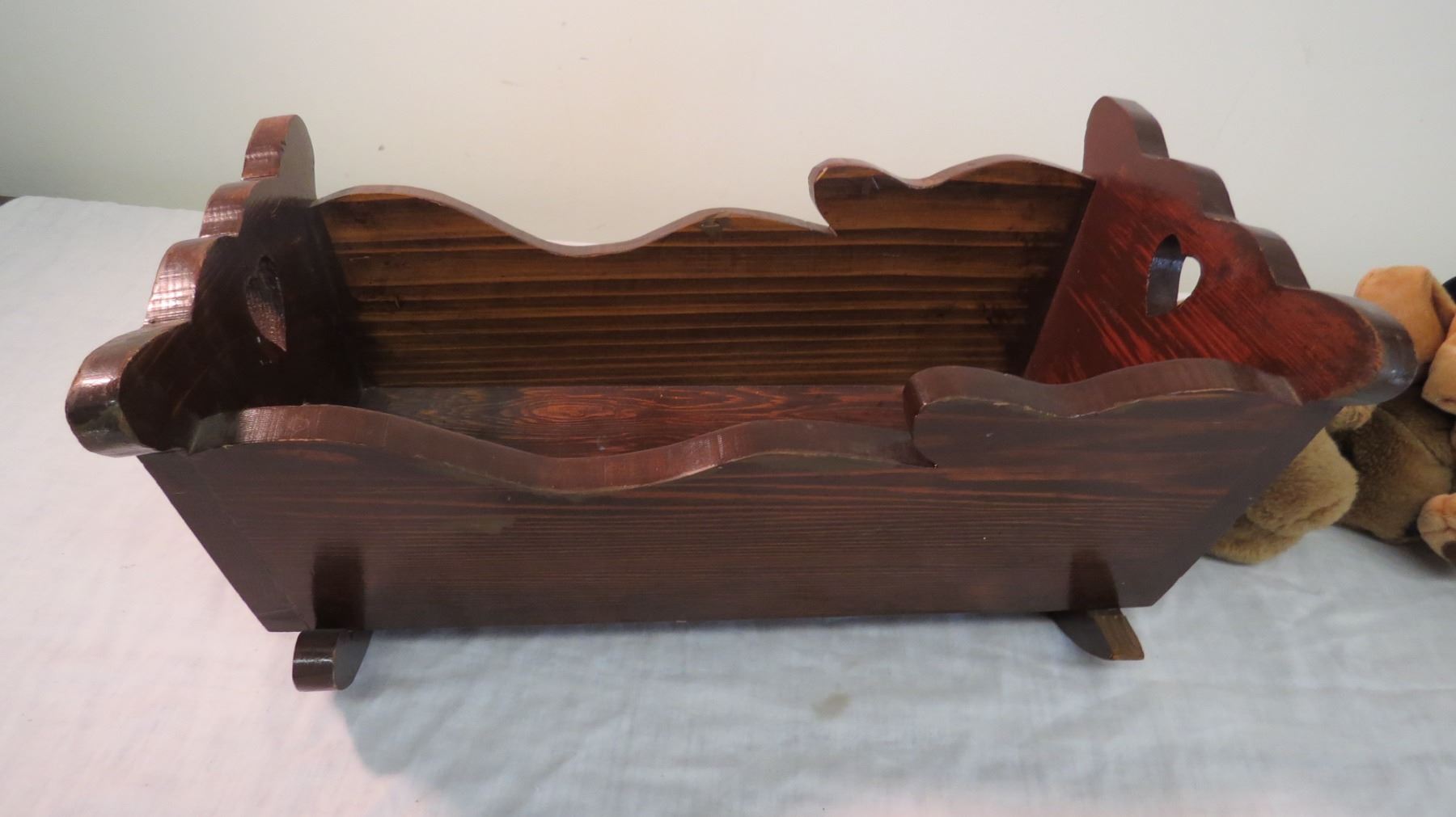 (2) stuffed toys with cradle - wooden