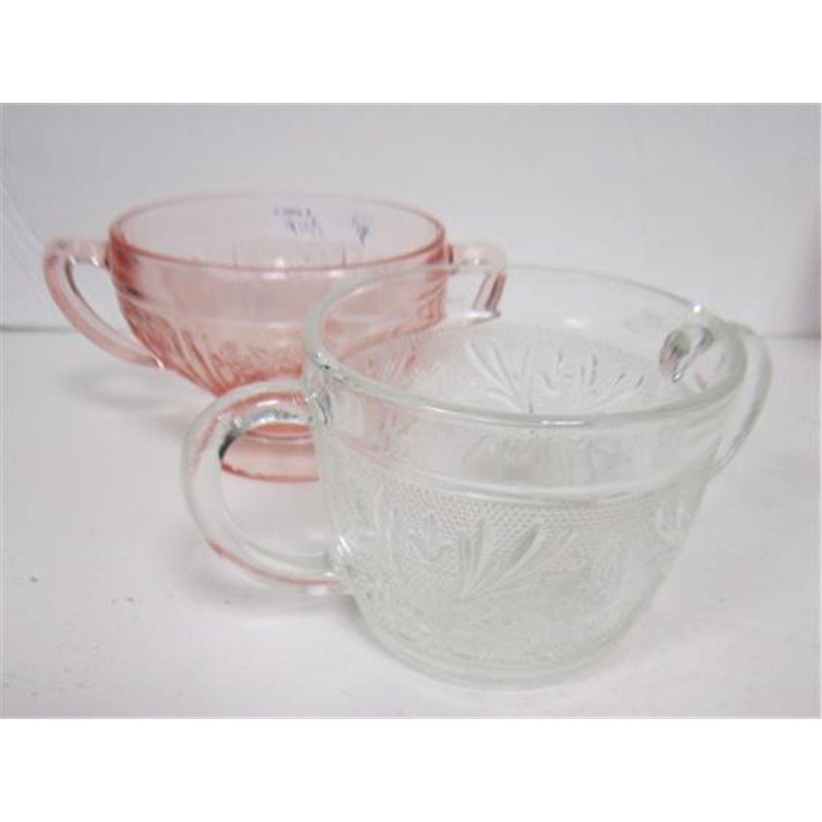 2 sugars with out lids -depression glass-Hocking crystal-Pink Sharon chip in base