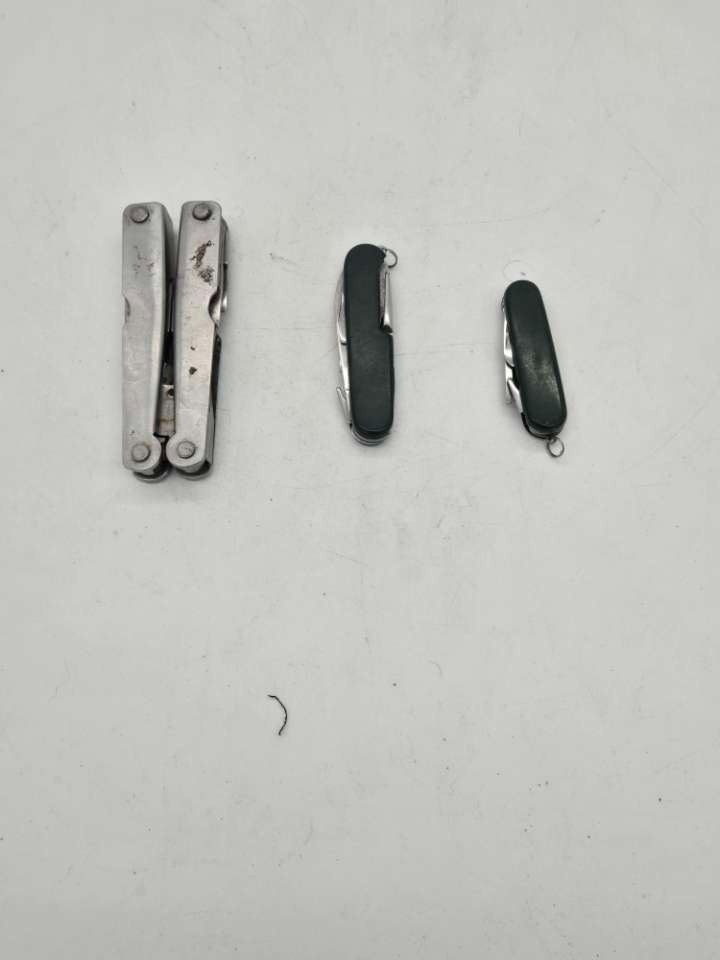 2 swiss army style knives and a multitool