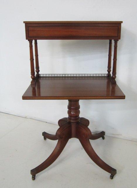 Beacon Hill Collection, desk has expolling interior, brass gallery on first level. Approx. 25" W x 17" D x 39" H. Please read our terms of sale.
