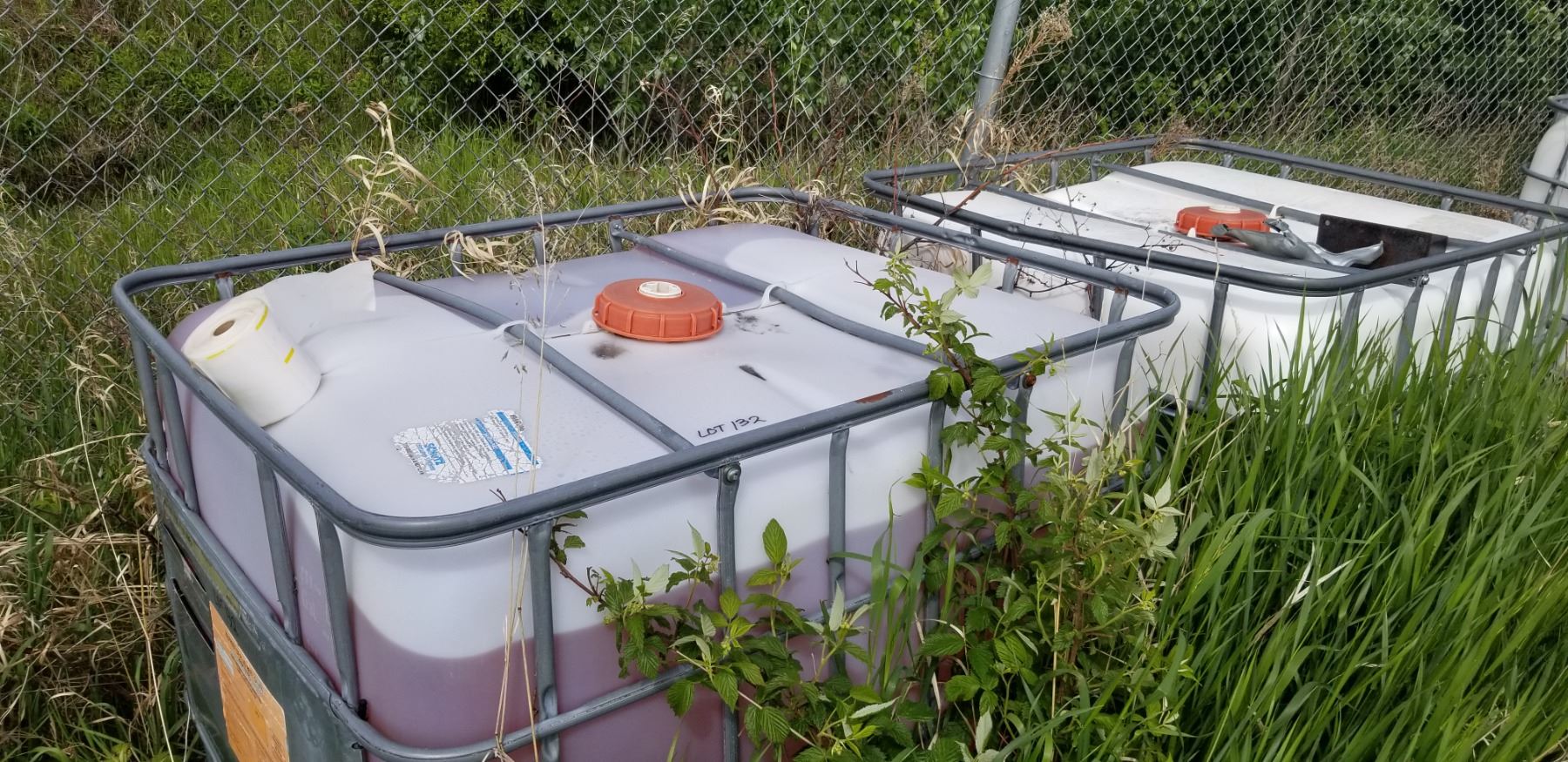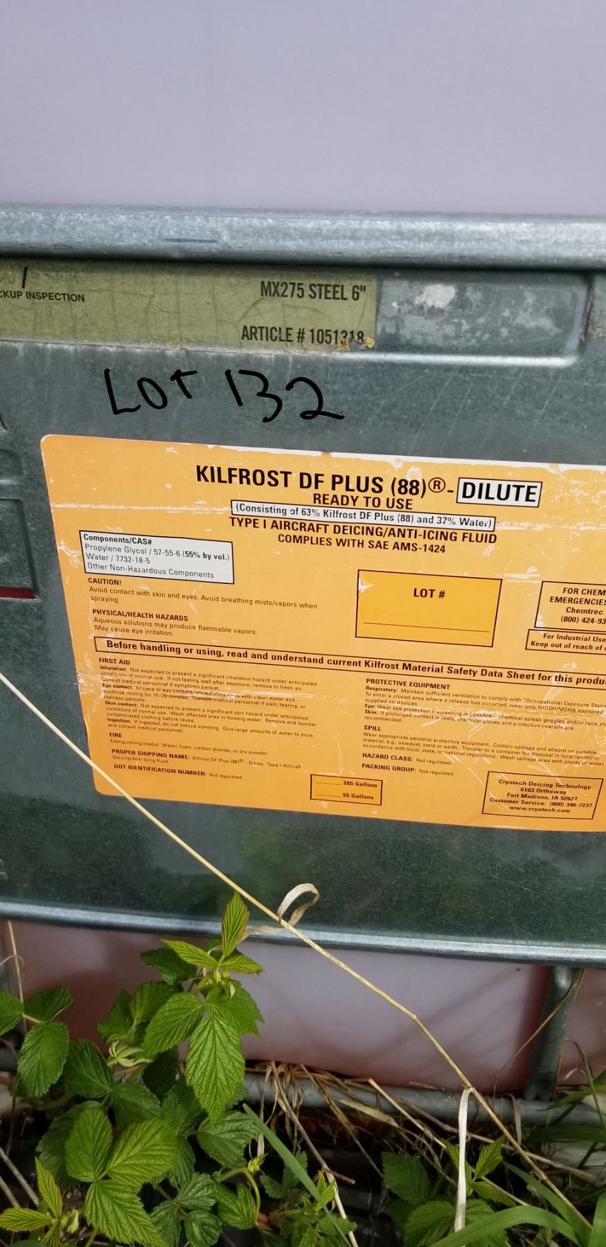 2 times 4x4 plastic liquid totes one is full of Aircraft Deicing fluid