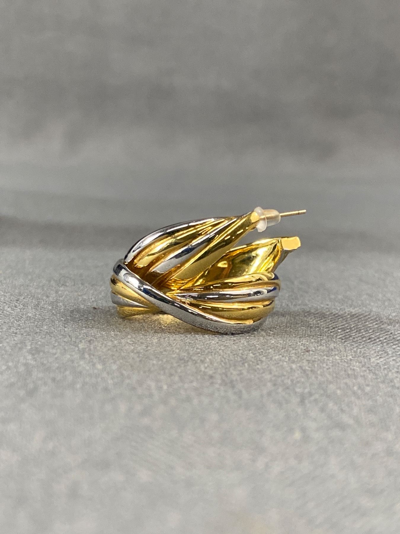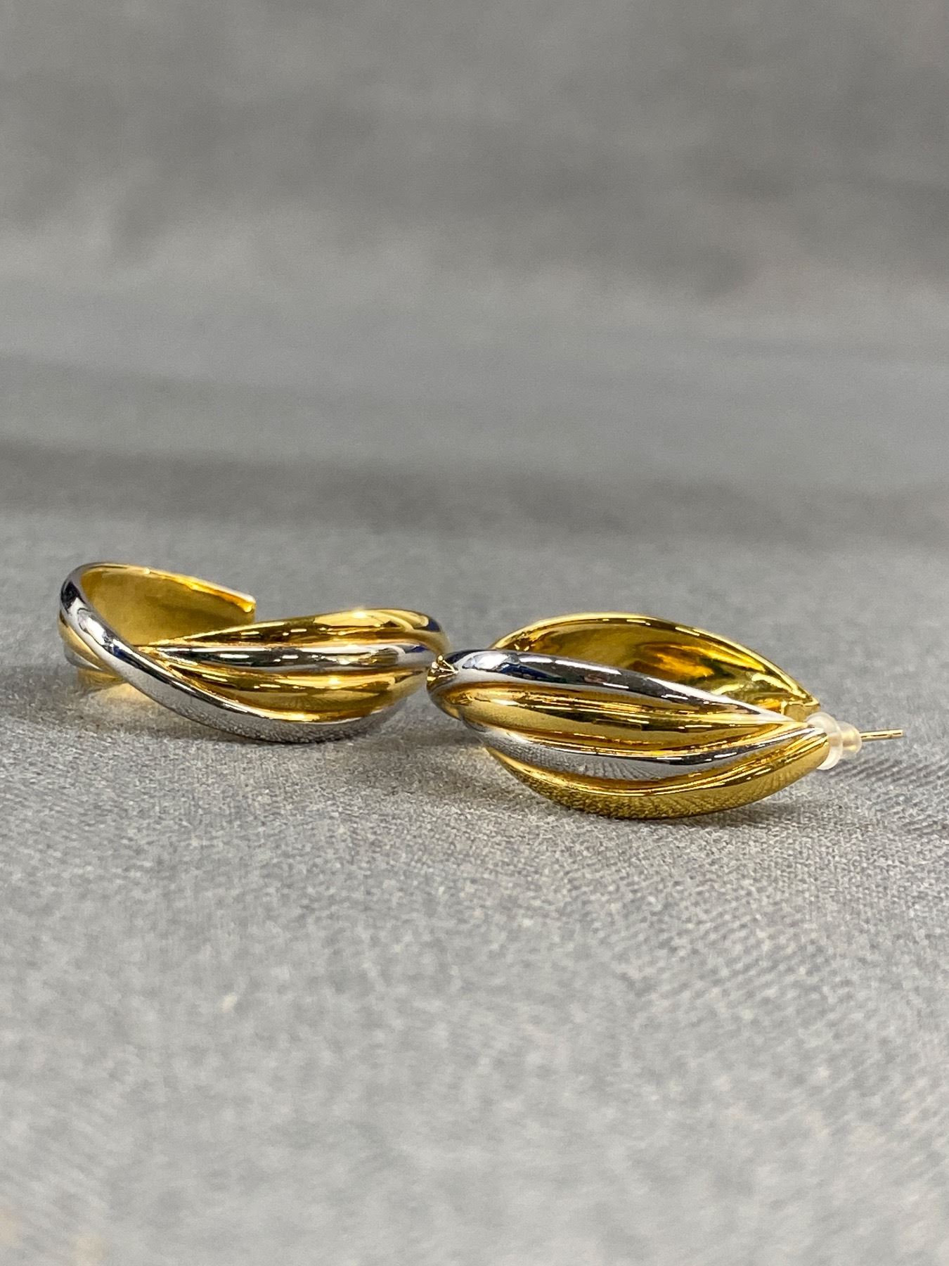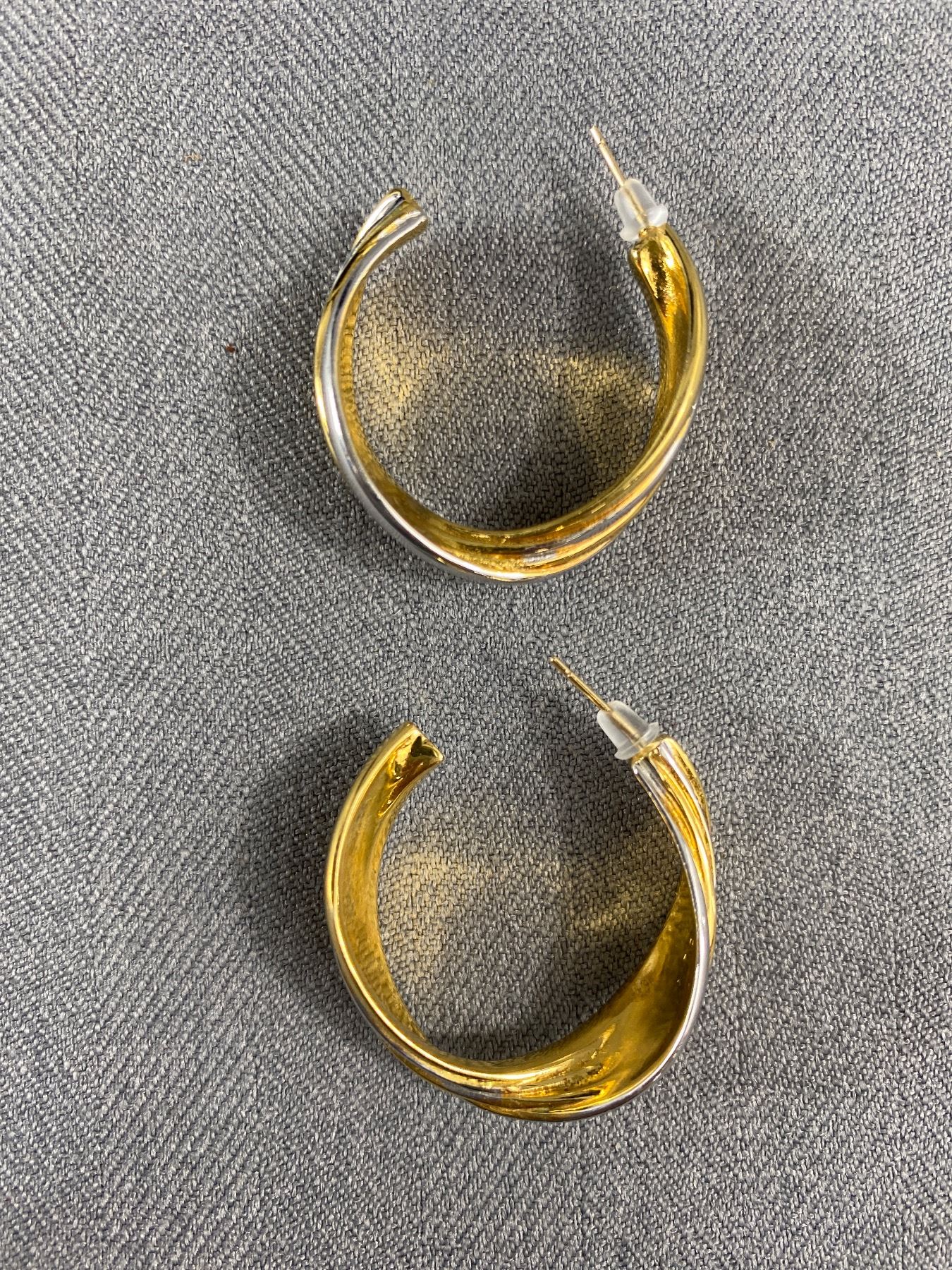 2 tone with 14k Sold Gold Post Pair of Hoop Earrings. Beautiful Condition