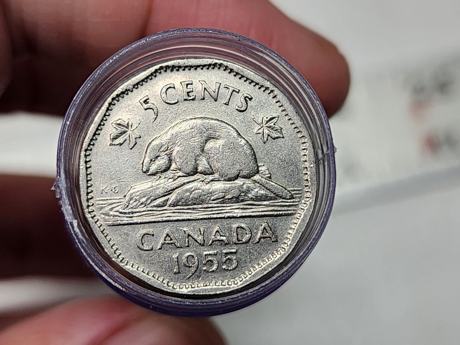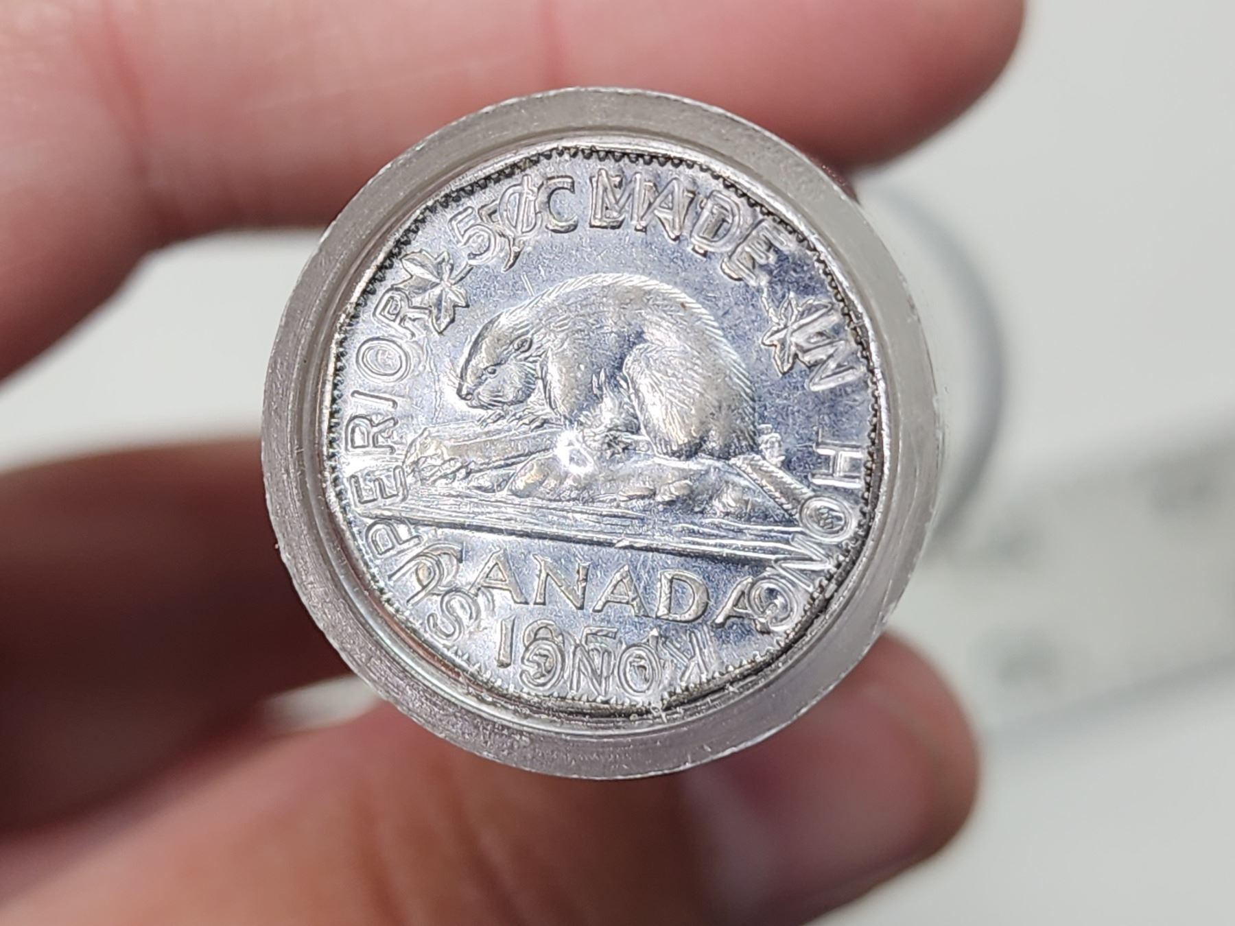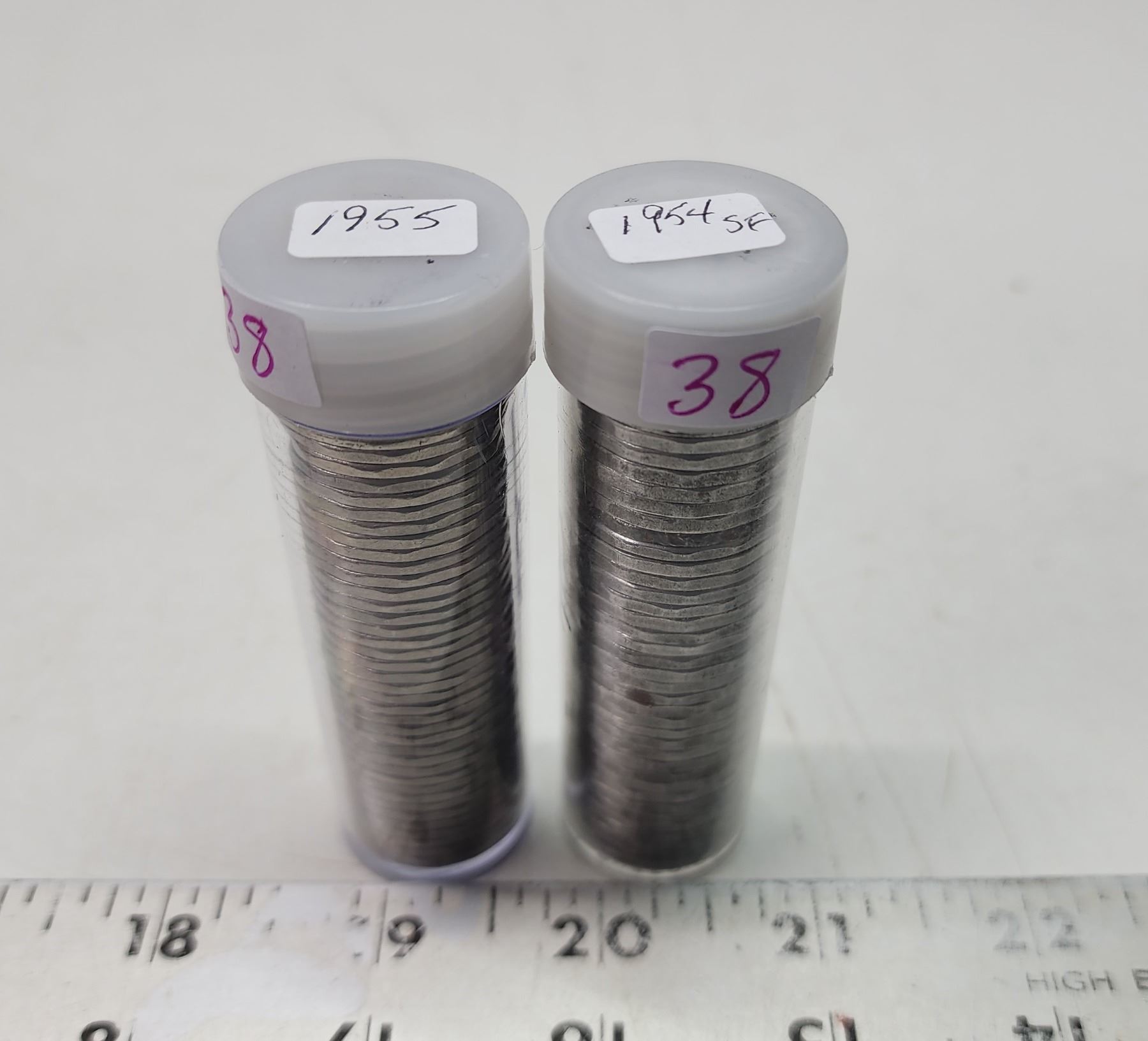 2 tubes - Canadian 1954 SF & 1955 5 cent coins