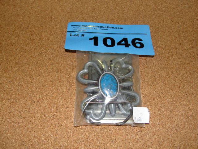 2 turqoiuse and silver colored belt buckles