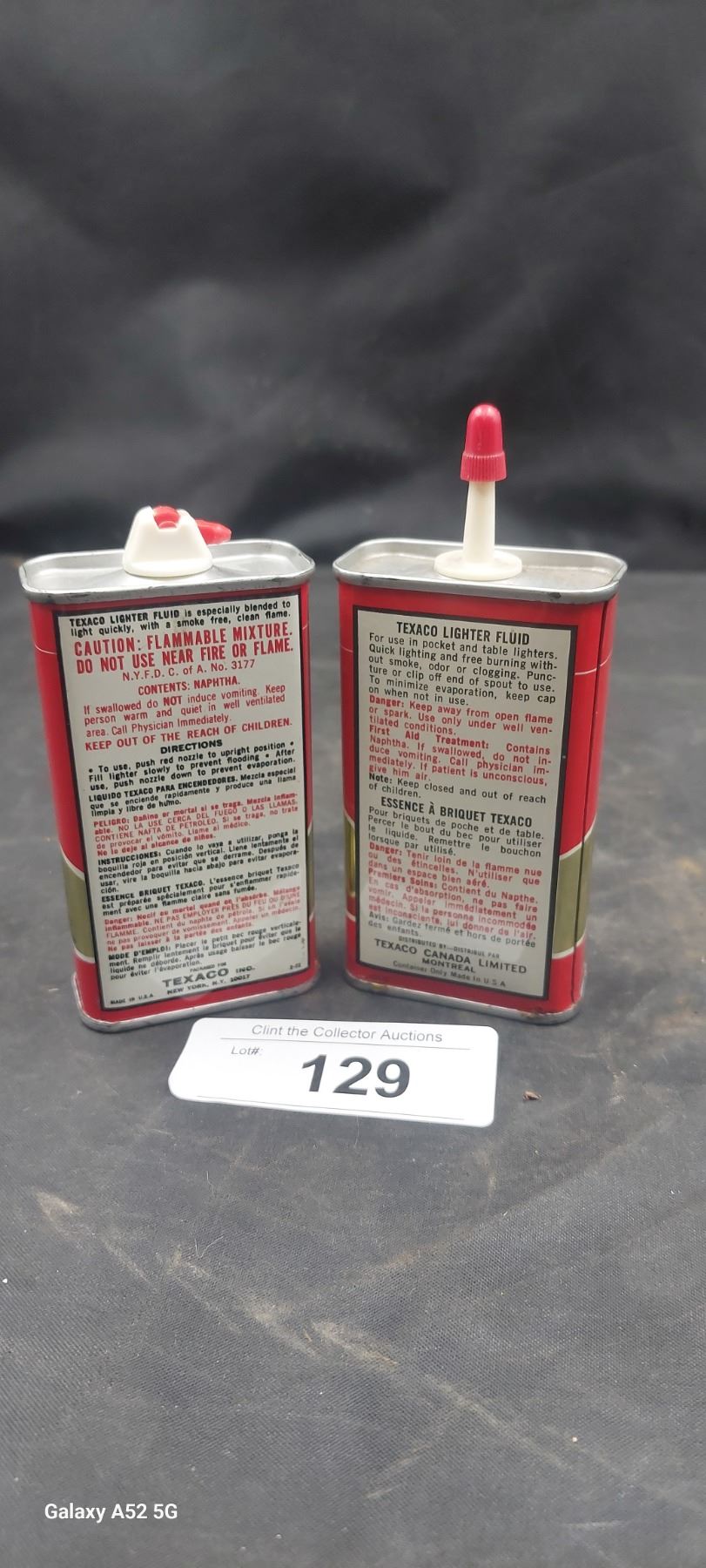 2 very nice condition Texaco lighter fluid tins both empty