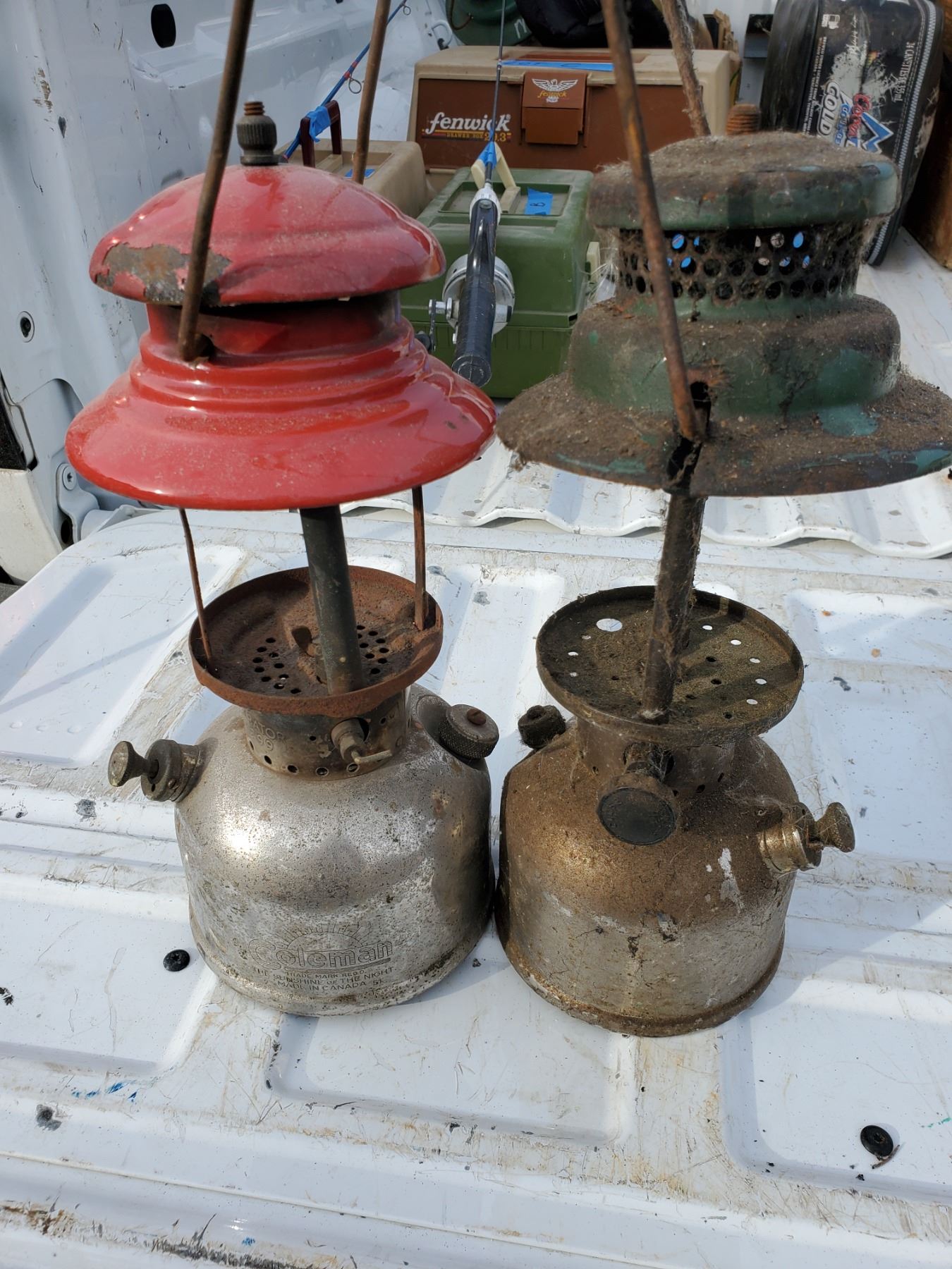 2 vintage Coleman lanterns 1948 and 1951 - missing glass