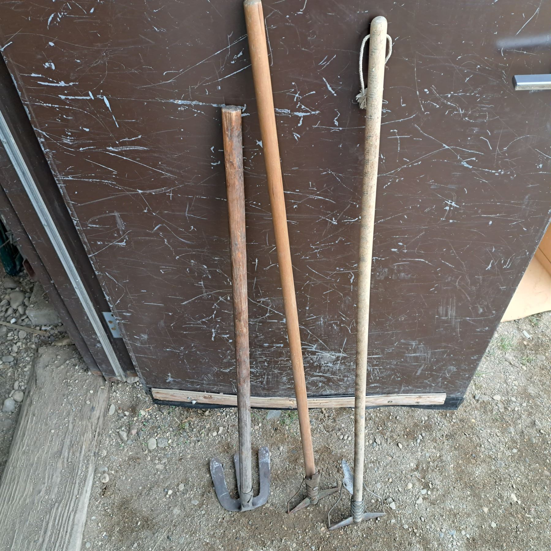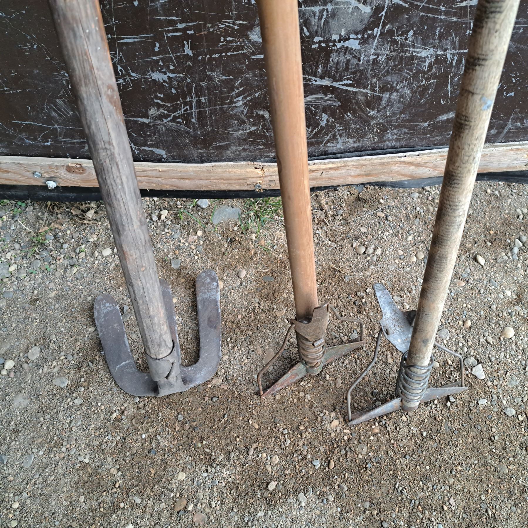 2 vintage hand mops and hoe